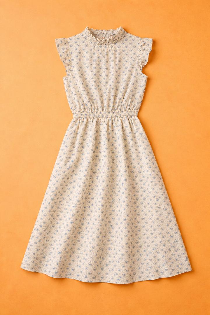Высокая горловина со сборкой, мягкие рюши на плечах, эластичная линия на талии формирует красивую посадку и подчеркивает фигуру, поэтому в этом прелестном платье вам будет не только красиво, а также комфортно. Идет на Small, но будет в пору и на Medium. Артикул: 501776