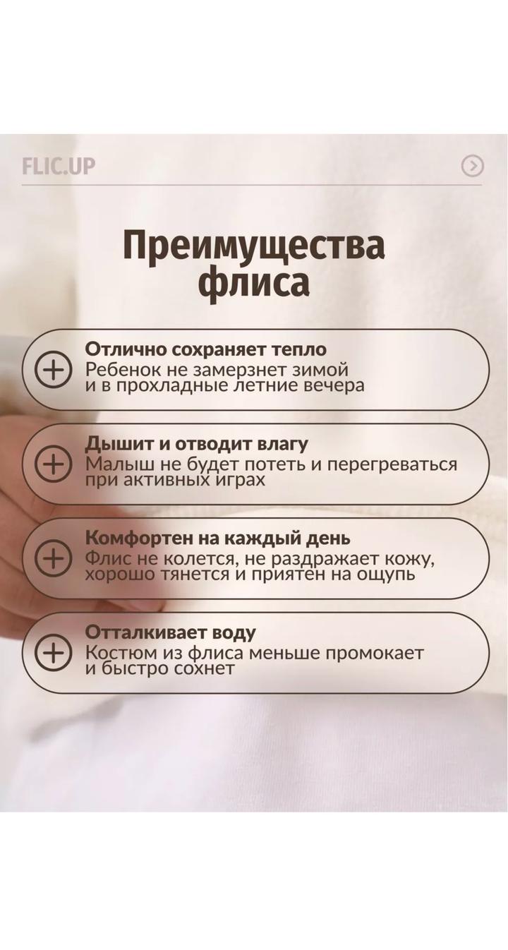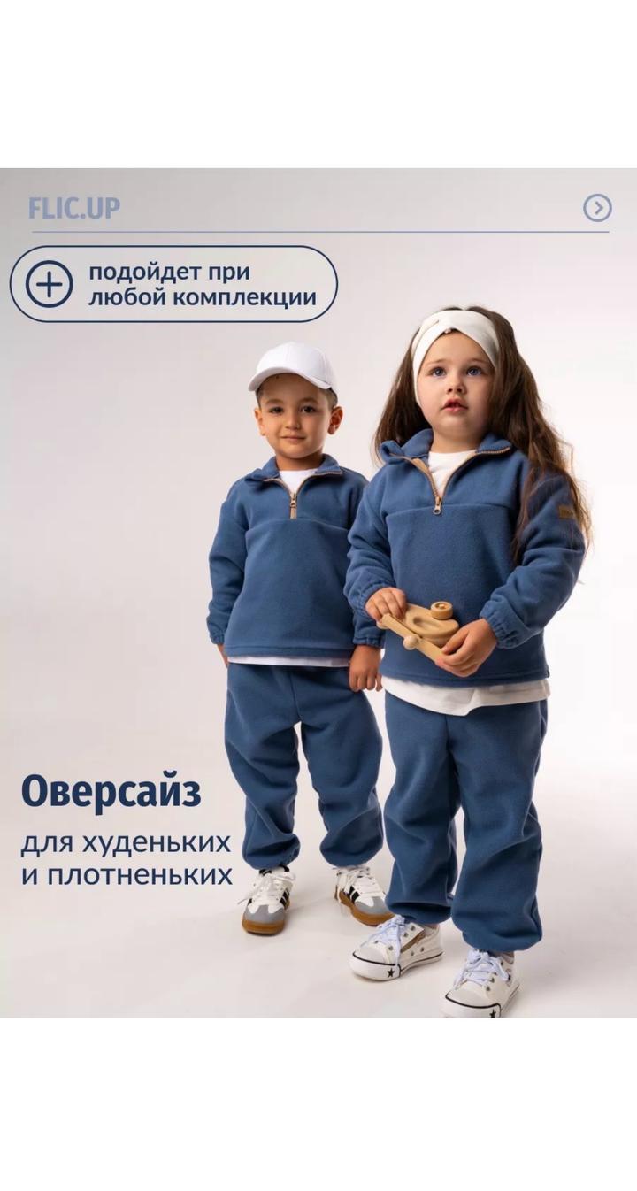 Тёплый детский флисовый костюм плотностью 285 г/м² — идеальный вариант для прохладной погоды, флис плотный, держит форму, вообще не вытягивается после стирки и не скатывается. В комплекте кофта на молнии с воротником-стойкой и удобные штаны на резинке. Свободный крой oversize не сковывает движения и подходит детям любой комплекции. Флис дышит, хорошо сохраняет тепло, отводит влагу и быстро сохнет. Костюм можно носить самостоятельно или как тёплый слой под верхнюю одежду. Артикул: 501778