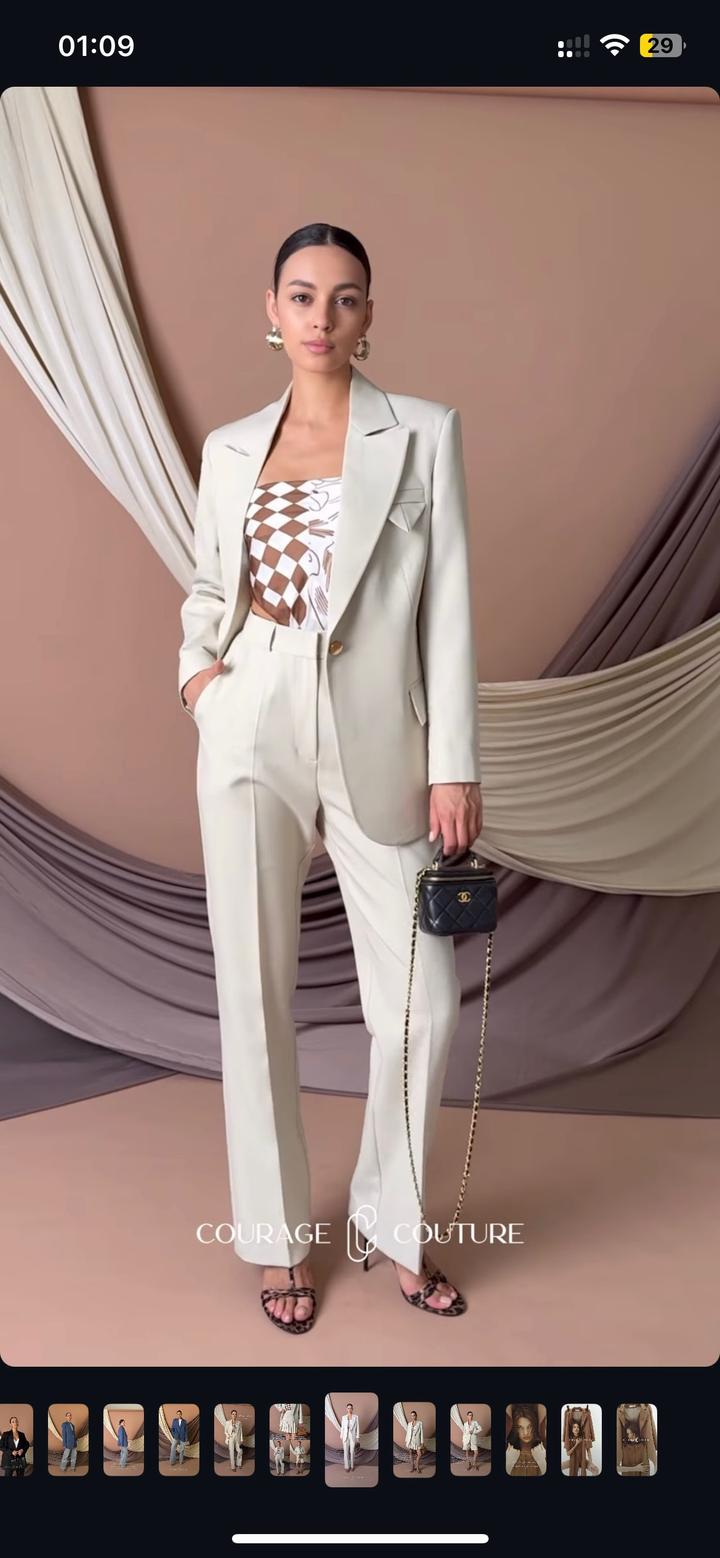 Классические брюки бренда Courage Couture. Молочно бежевый цвет. Костюмная ткань. Высокая посадка. На рост 160 см. Артикул: 501849