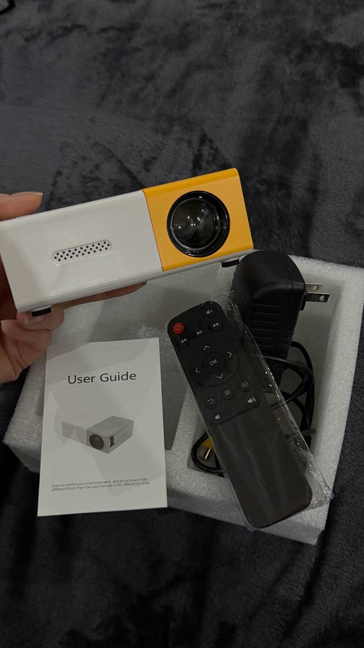 Новый портативный мини проектор YG-300 Комплектация: 1. Проектор для трансляции изображений и видео 2. Блок питания 3. Аналоговый кабель 4. Инструкция 5. Пульт управления Артикул: 501959