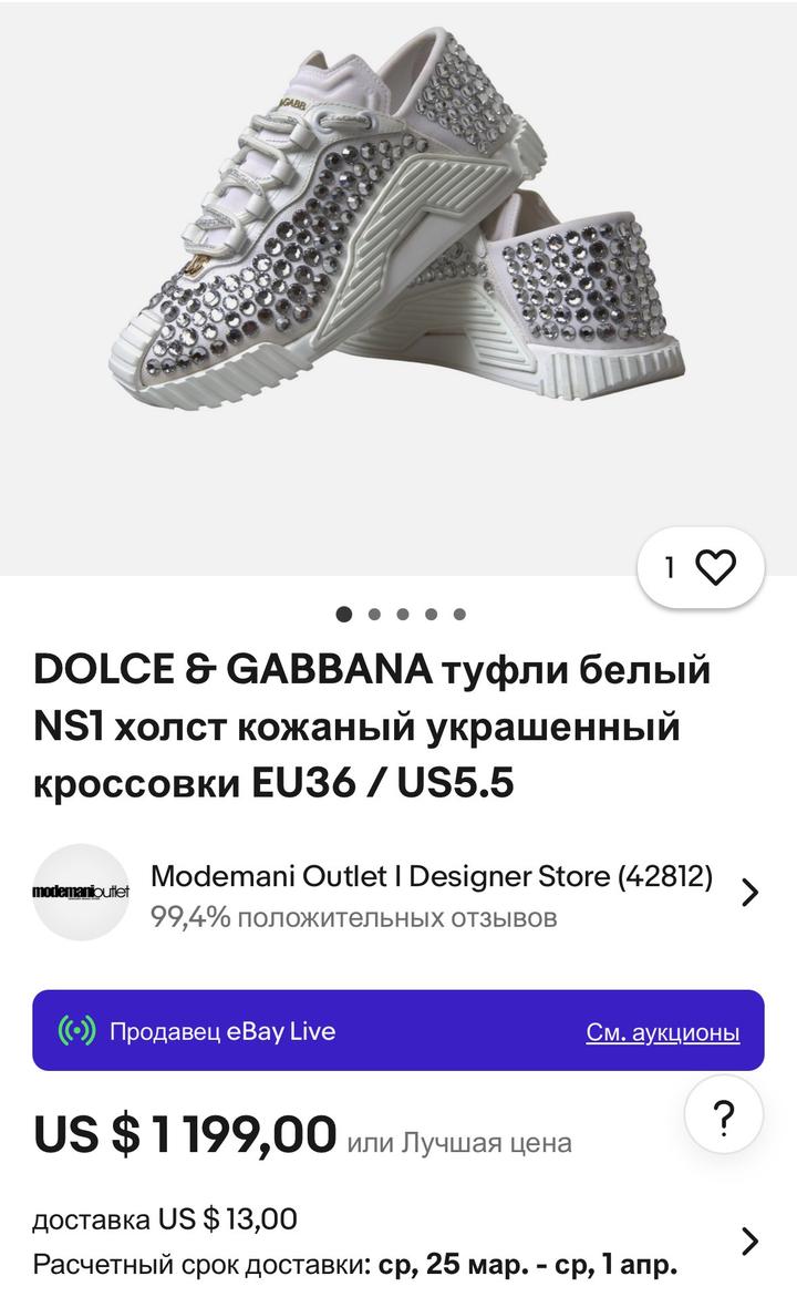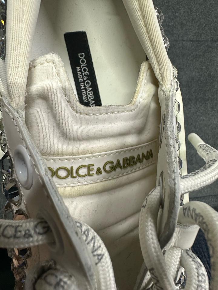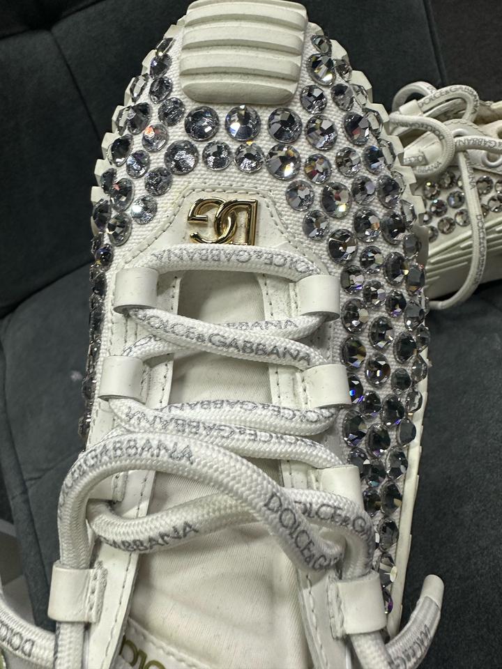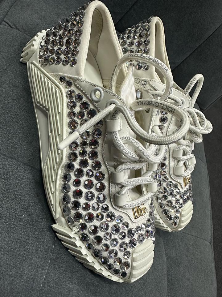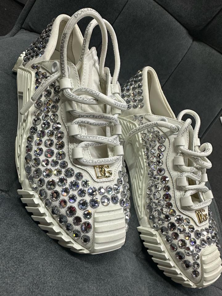 Кроссовки от Dolce & Gabbana NS1 из канваса и кожи, украшенная стразами. Материалы верха: Комбинация текстиля, кожи и декоративных кристаллов/страз. Подкладка: Кожаная для комфорта. Стелька: Съемная, с логотипом бренда. Оригинал! Артикул: 502010