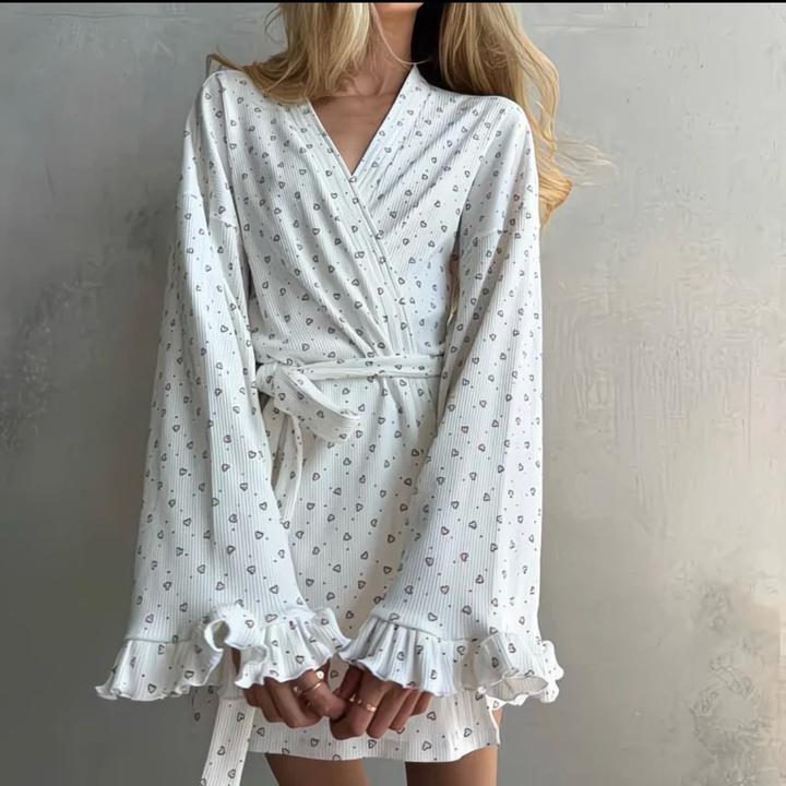 Нежный халатик с поясом и с воланами на рукавах Так и не носила Т к много домашнего одежды Подойдет на С М Л Артикул: 502261