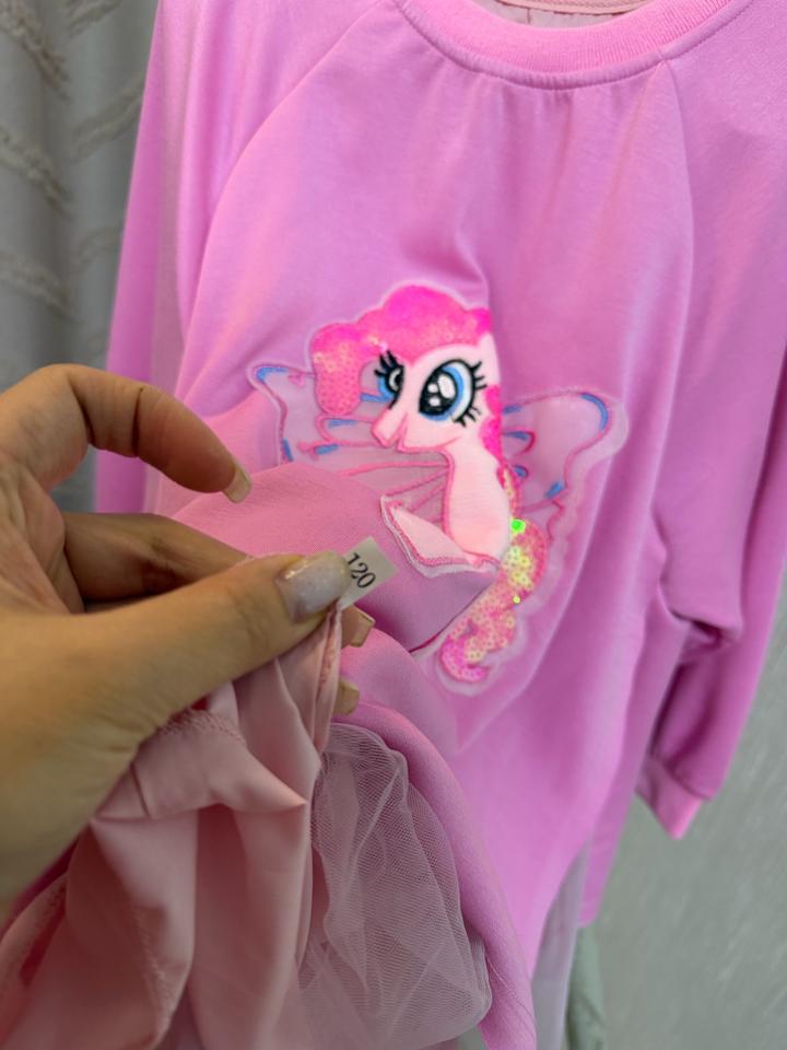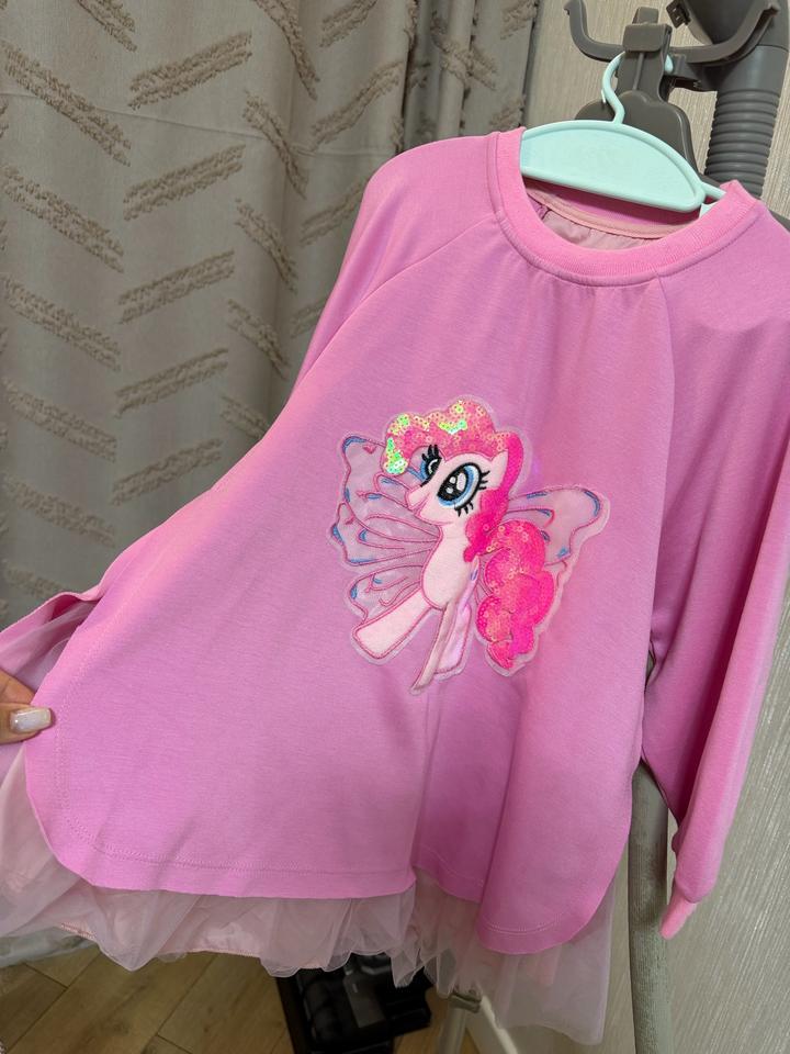 Яркое платье для девочки с принтом единорожки Артикул: 502275