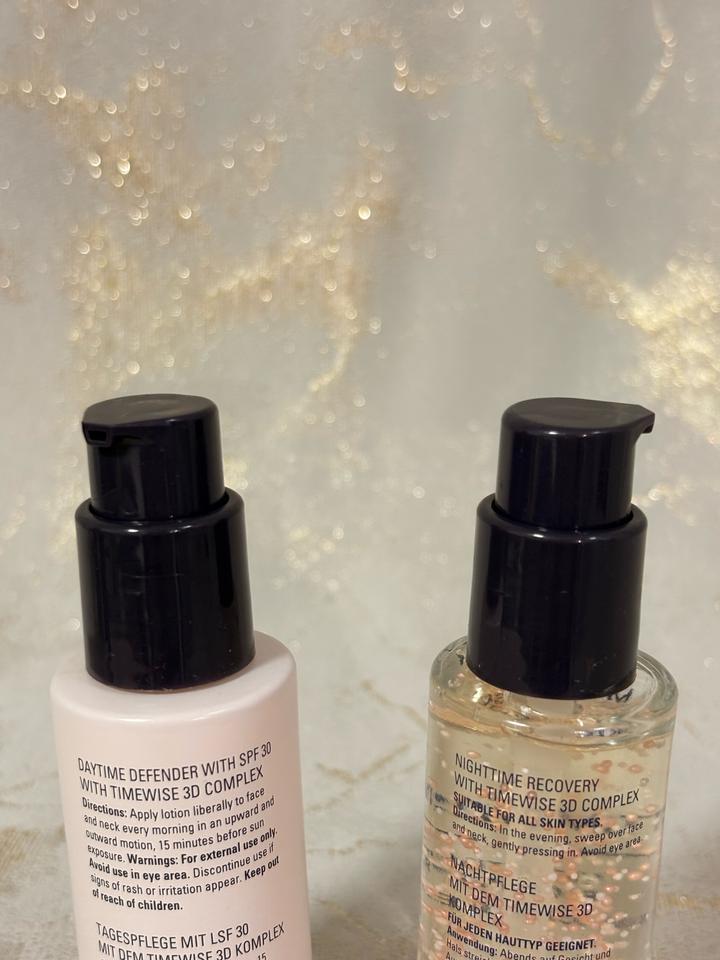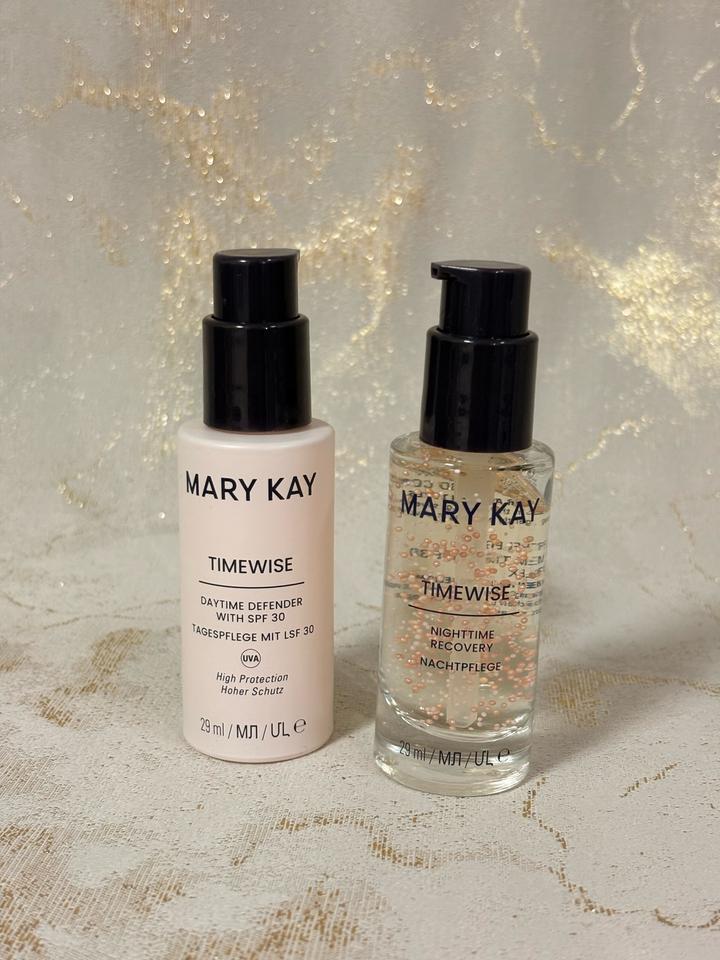Дневное защитное средство с SPF 30 TimeWise, незаменимое средство ежедневного ухода за кожей, помогает защитить кожу от стрессовых воздействий окружающей среды и уменьшить видимое преждевременное старение кожи, одновременно защищая от UVA/UVB-лучей. Ночное восстанавливающее средство TimeWise® поддерживает естественный процесс кожи по восполнению того, что истощается в течение дня, благодаря чему кожа выглядит отдохнувшей, обновленной, а тонкие линии и морщинки разглаживаются. Артикул: 502276