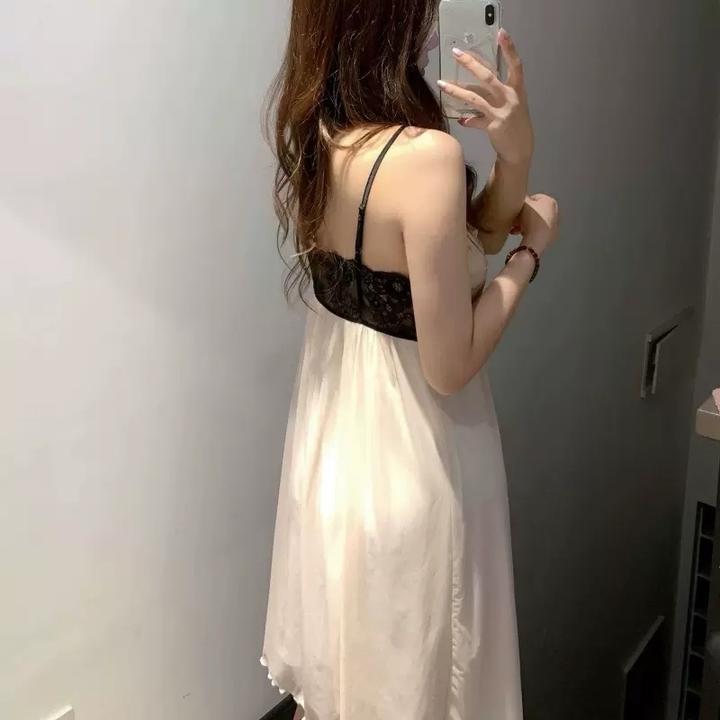 Легкая шифоновая сорочка с завышенной талией и свободным кроем. Лиф: V-образный вырез, декорирован черным кружевом и бантиком. Спина: Полностью кружевная вставка, тонкие регулируемые бретели. Низ: Свободный, летящий силуэт, край обработан мягкой волной. Материал: Тонкий шифон, мягкое эластичное кружево. Артикул: 502303
