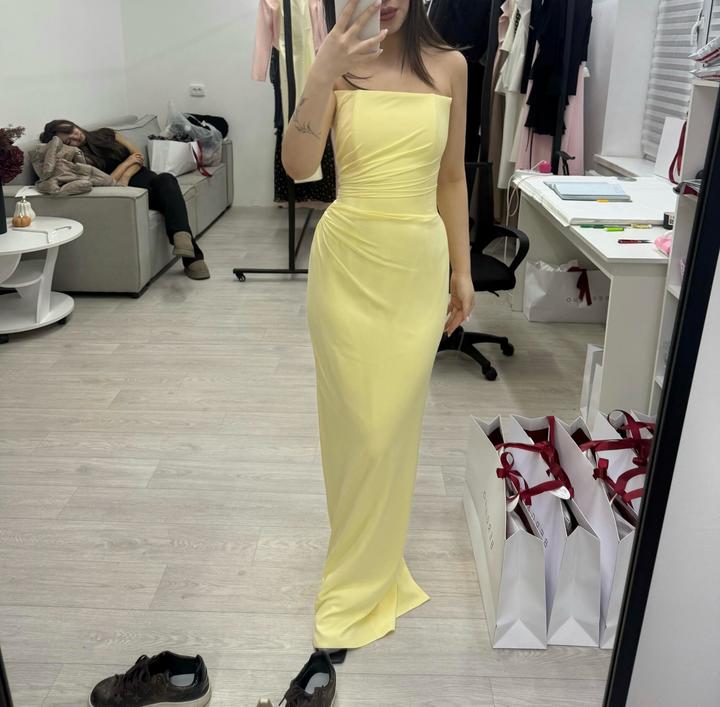 Элегантное платье в мягком лимонном оттенке.Корсетная посадка красиво подчеркивает талию и линию фигуры,а струящийся шифоновый шарф добавляет изящности и делает образ более эффектным.Одевала только один раз на свадьбу.В хорошем состоянии,после химчистки. Артикул: 502308