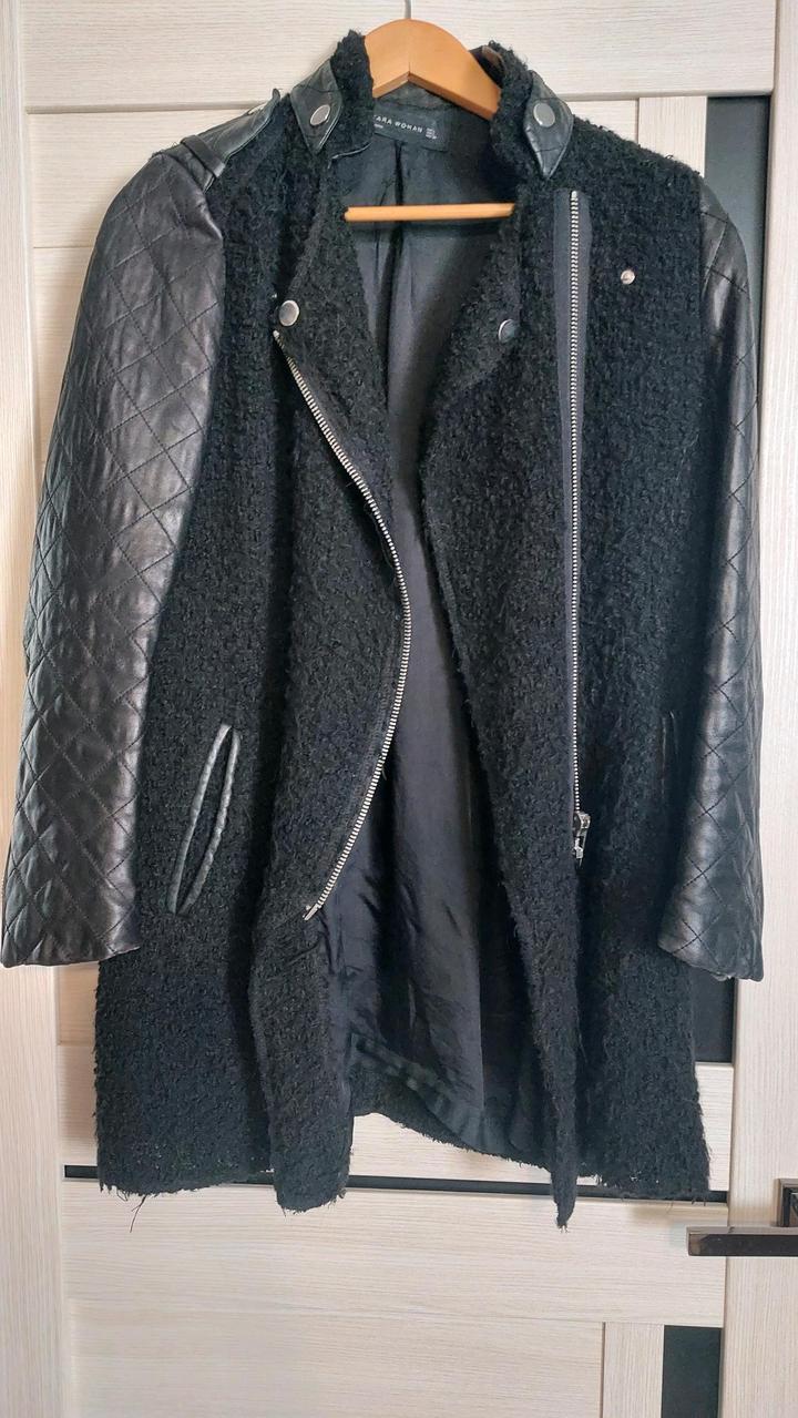 Zara кожа•овчина пальто МM