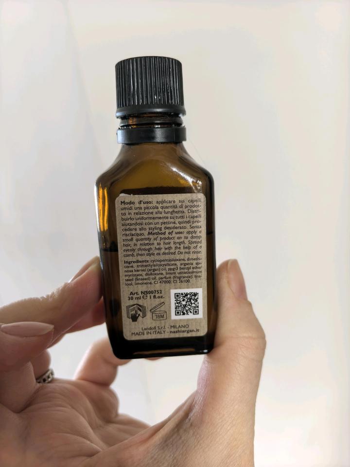 Профессиональное аргановое масло для волос от Nashi Argan. Общий объём 30 мл, во флаконе больше половины, брала дорого в салоне Sandro (Астана). Запах шикарный, остаётся долго на волосах, описание выложила в фотографиях. Артикул: 502487