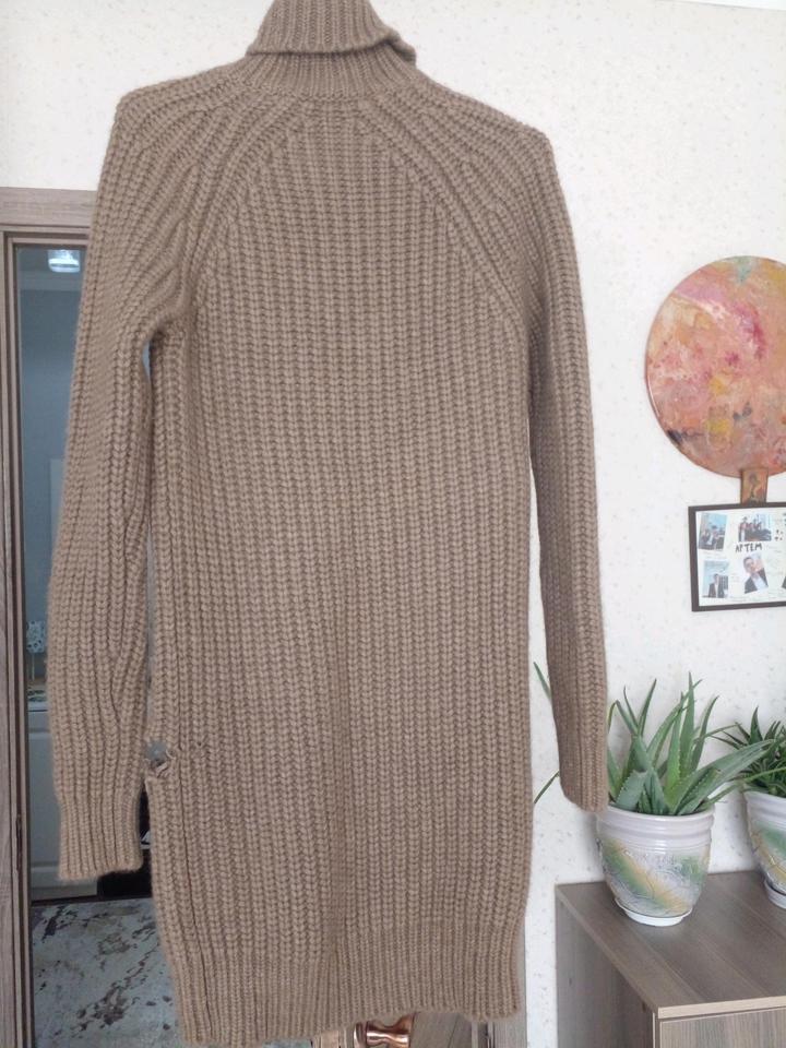 Плотная качественная вязка Тёплый бежево-карамельный цвет Удлинённый фасон (можно как платье или тунику) Отлично сидит по фигуре, слегка тянется Идеально на осень/зиму Артикул: 502599