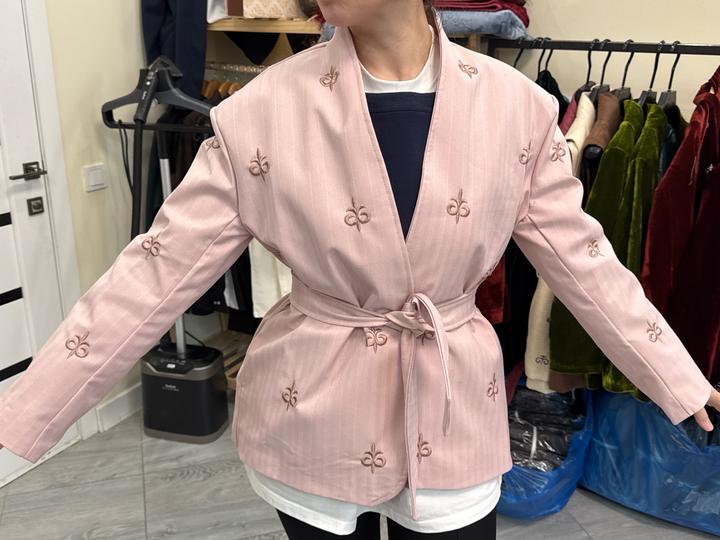 Новый стильный жакет, получен в подарок, но не подошёл — поэтому продаю. Ни разу не носился. Очень красивый нежно-розовый цвет, с поясом, подчёркивает талию. Ткань плотная, качественная, держит форму. Подойдёт как для повседневной носки, так и на выход. Размер: 46 размер, подойдёт на S–M. Артикул: 502677