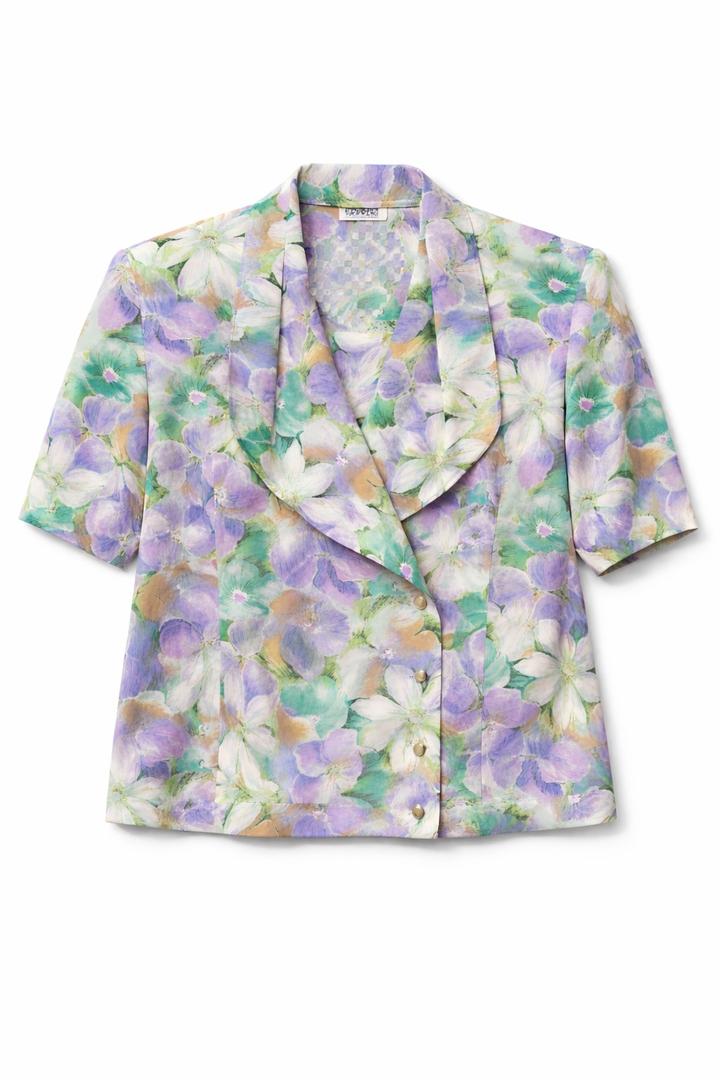 Лёгкая блуза с коротким рукавом и цветочным принтом в пастельных оттенках. Мягкая ткань, подплечники, легкий приталенный силуэт сделают вас еще нежнее и женственнее 🌸 Артикул: 502724