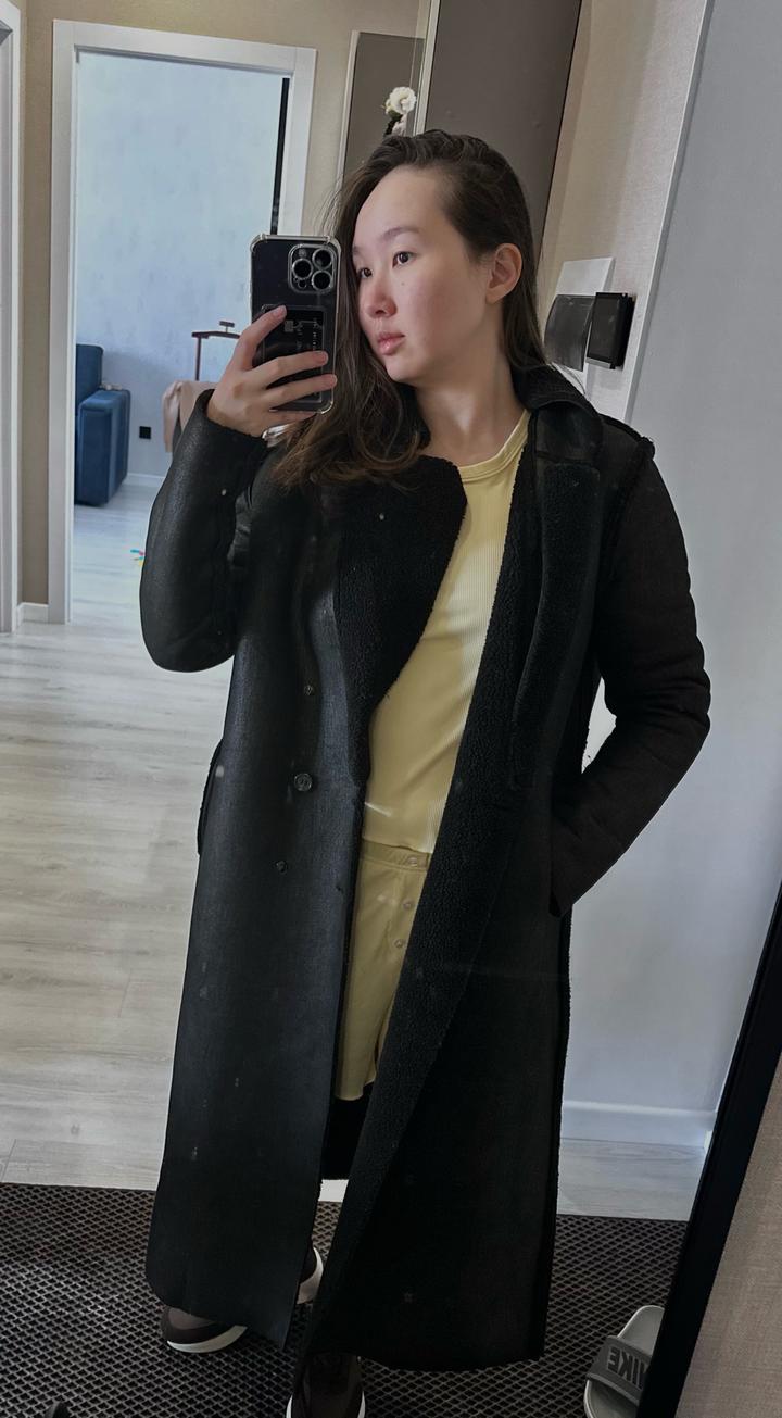Двустороннее пальто материал под овчину+дубленка , можно носить обе стороны, карманы целые. Мой рост 170 см. Пальто в пол. Артикул: 502856