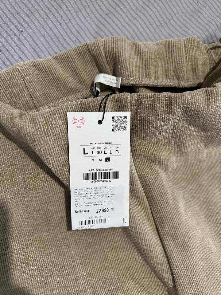 Вельветовые брюки Balloon Zara, новые с этикеткой, размер л, цвет бежевый Артикул: 503184