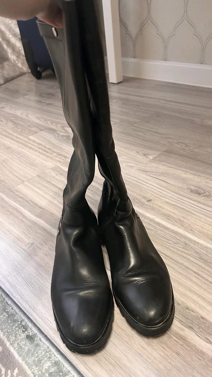 Черные сапоги из натуральной кожи, состояние хорошее, замки в идеальном состоянии, есть пару незаметных мятин Артикул: 503277