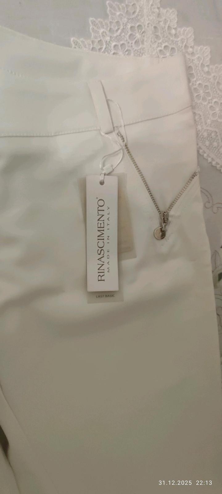 Продам Женские брюки RINASCIMENTO (Италия). Размер европейский L (40–42). Цвет — молочный / айвори. Состояние: новое Так и не носила , потому что я резко пополнела и не успела одеть. Артикул: 503316