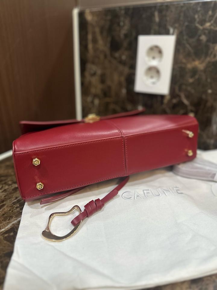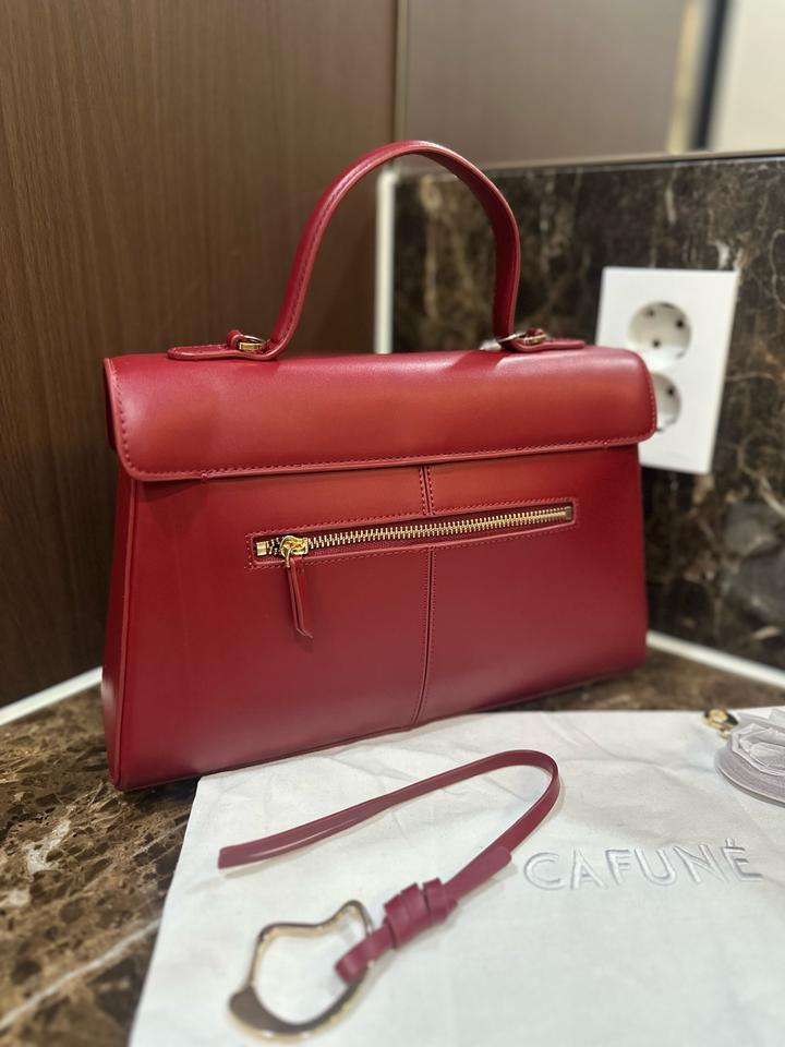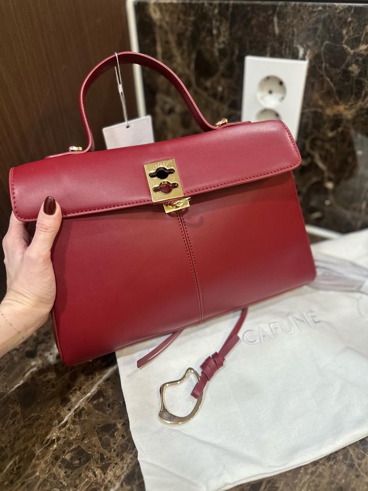 Сумка Cafuné, модель Stance, размер большой. Новая, с этикеткой и пыльником и длинным ремешком. Размер супер для города и для вечера, 30см х 19см х 6см. Красивый насыщенный красный цвет, больше к бордовому, фурнитура золото. Привезли с Гуанджоу, но перепутали размер, поэтому продается. Артикул: 503342