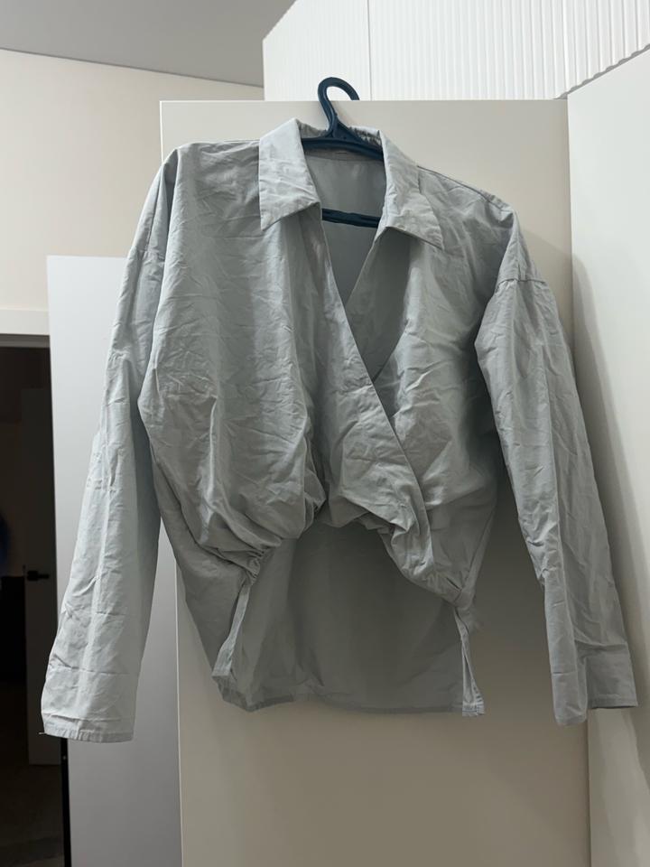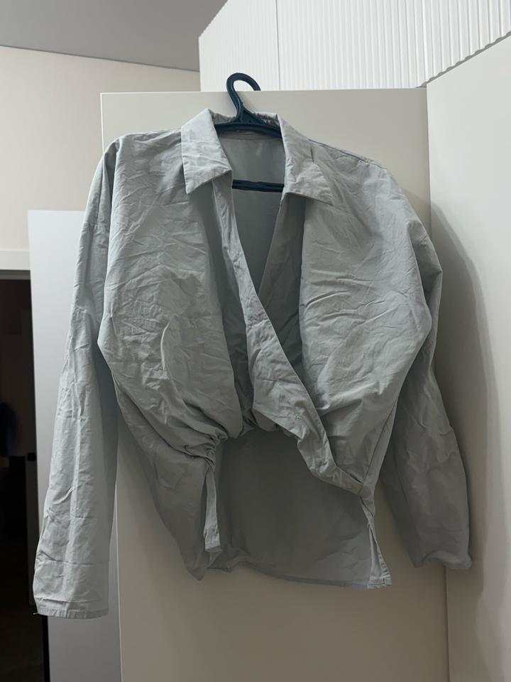 Продам очень стильную рубашку в светло-сером цвете. Модель необычного кроя с эффектом «запаха» и интересной драпировкой спереди — смотрится очень женственно и оригинально. Ткань легкая, приятная к телу, отлично держит форму. Рубашка универсальная: ее можно надеть как в офис или на учебу, так и на вечерний выход. Шикарно сочетается с классическими брюками или юбкой-карандаш. Состояние отличное. Артикул: 503351