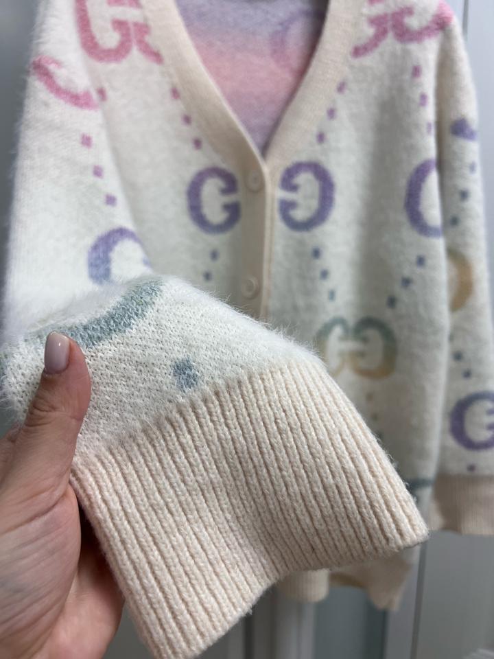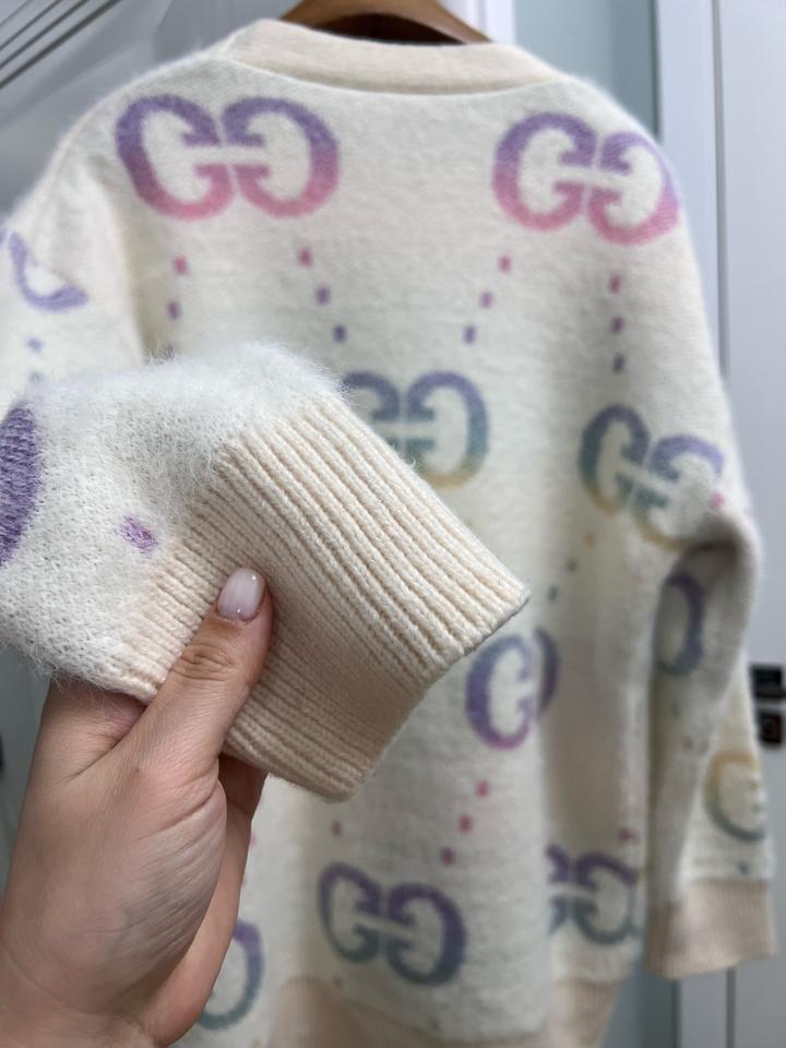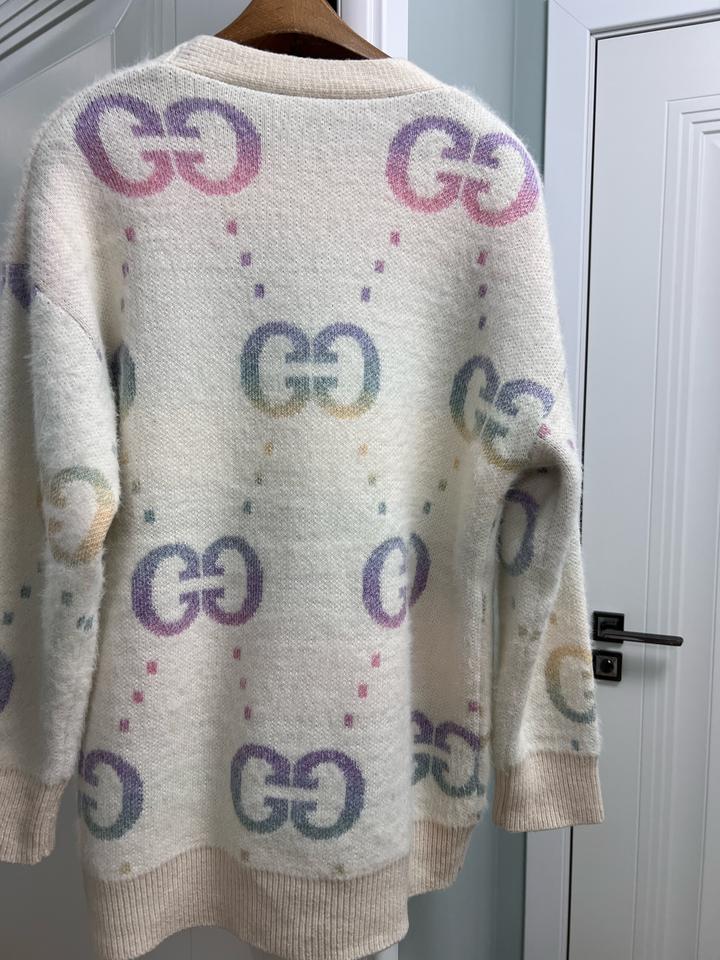 Кардиган новый, без бирки, очень нежный, на весну в самый раз, длинный закрывает ягодицы, с надписями Gucci Артикул: 503416