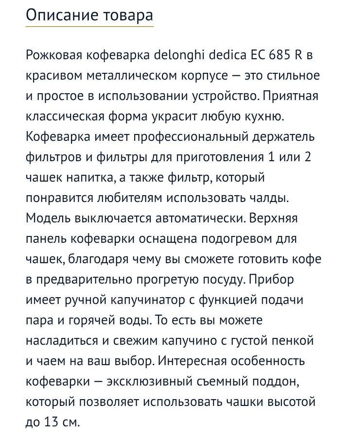 Рожковая кофеварка DeLonghi EC 685 R, как новая Артикул: 503478