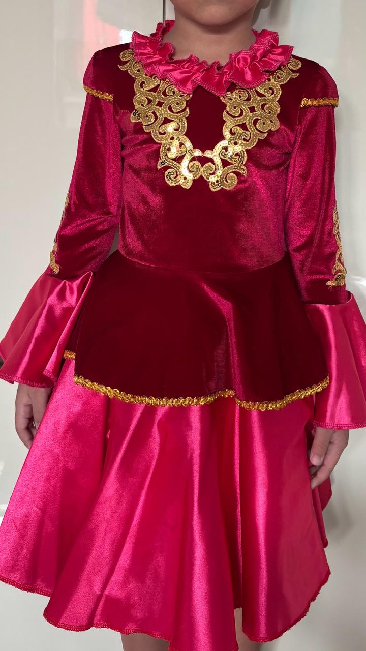 Розовая юбка с верхом и с золотыми узорами,в отличном состоянии,с хорошими швами,тканью и молнией.В комплекте идет головной убор и пояс.Подойдет на девочку 6-8 лет.Одели 1 раз на выступление.Сшили на заказ.Аренда 8000 Артикул: 503507