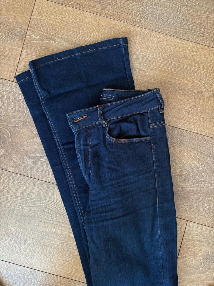 Джинсы клёш Очень красивый цвет, сидят по фигуре красиво! Размер S Артикул: 503560