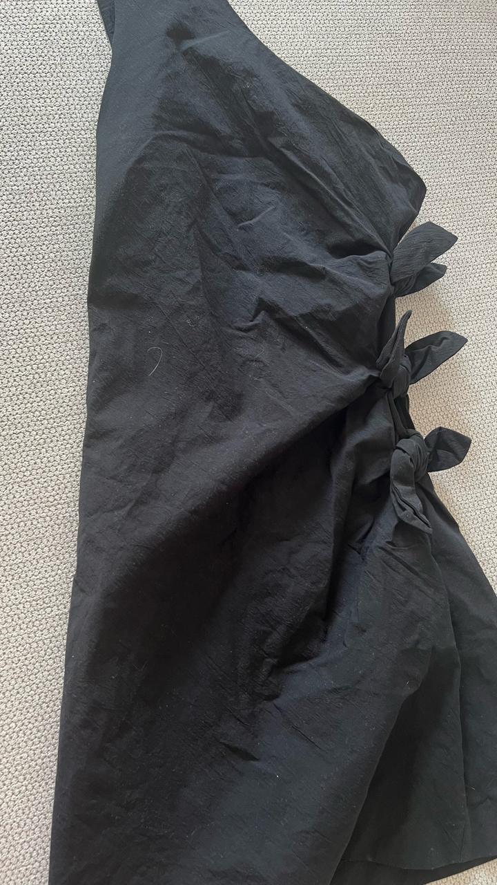 Черное мини платье из хлопка, с завязками на талии, на одно плечо, зара, размер xs-s Артикул: 503570