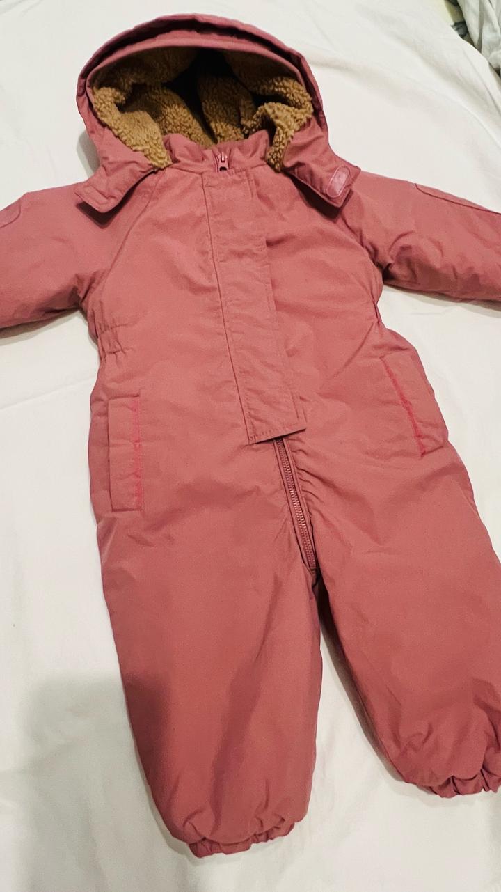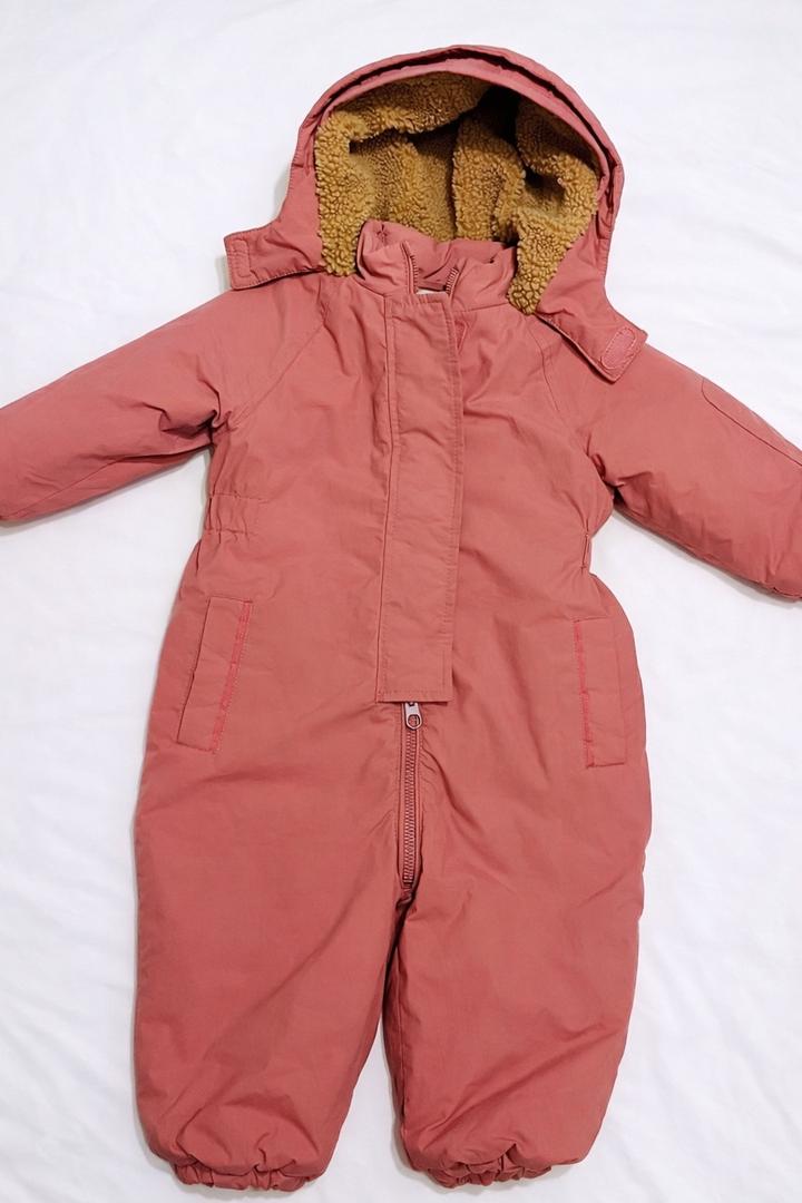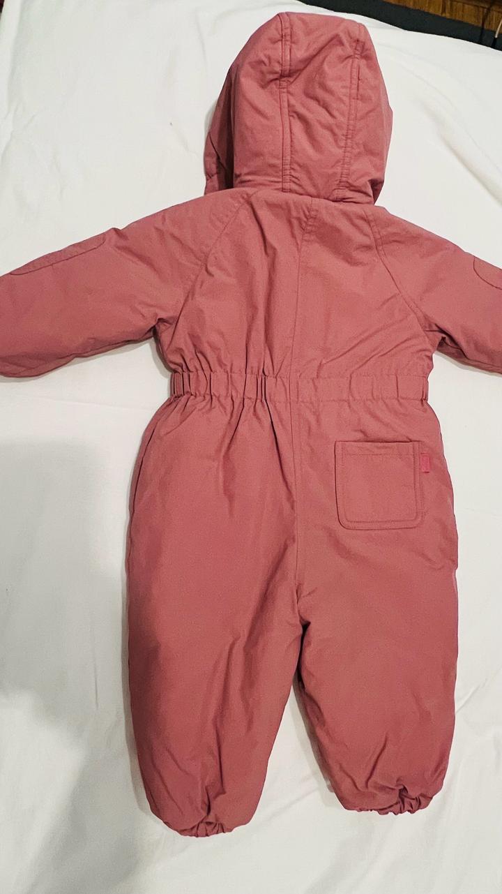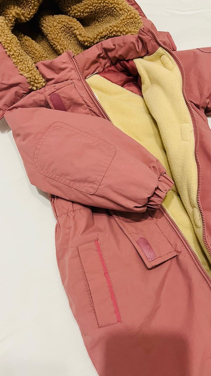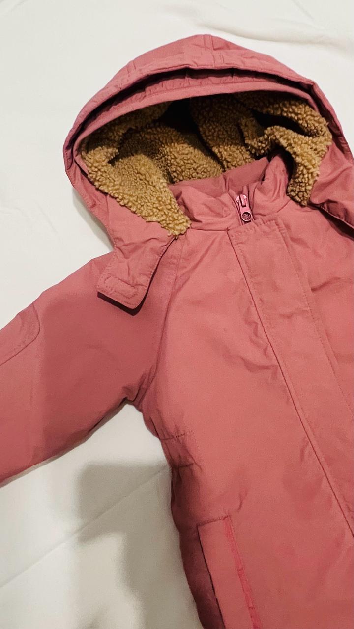 Очень удобный и практичный — легко надевать за счёт молнии. Внутри мягкая флисовая подкладка, в капюшоне тёплый мех. Отлично держит тепло, не продувается. Размер 18-24 мес рост примерно 86-92 Состав: верх — нейлон (водоотталкивающий), подкладка и утеплитель — полиэстер. Подойдёт на осень и зиму. Хороший состав, потому что: • нейлон = не продувается и держит влагу • полиэстер = лёгкий, тёплый и быстро сохнет Состояние хорошее, без дыр и дефектов. Артикул: 503764