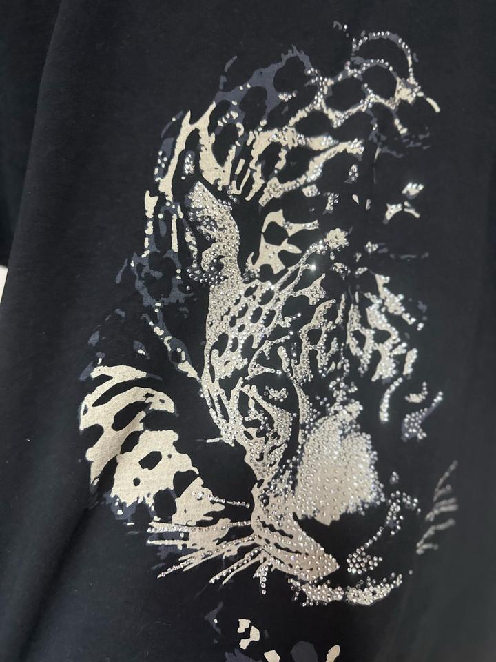 Футболка Liu Jo Milano с эффектным принтом 🖤 Чёрная база и контрастное изображение хищника со стразами — выглядит стильно и с характером. Прямой свободный крой, мягкий трикотаж, хорошо садится и легко комбинируется с джинсами, юбками и жакетами. Идеальна для повседневных образов с акцентом. Артикул: 503800