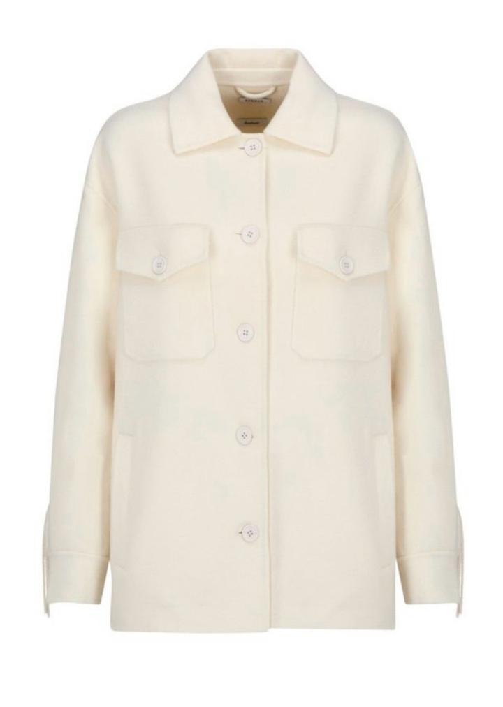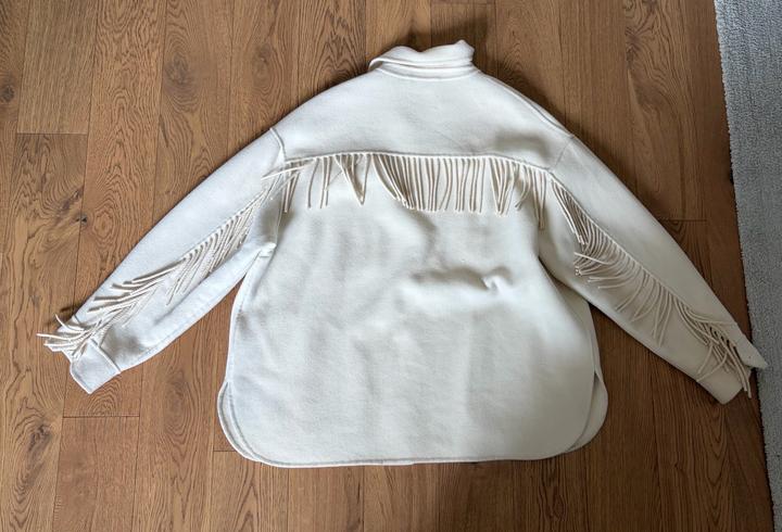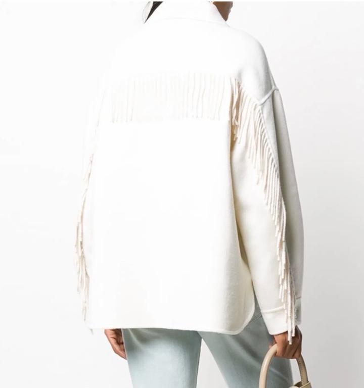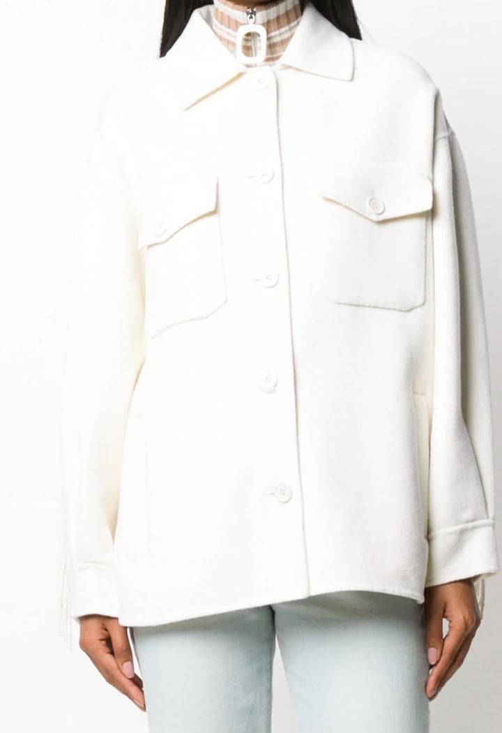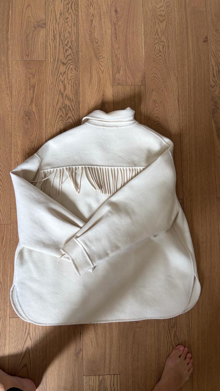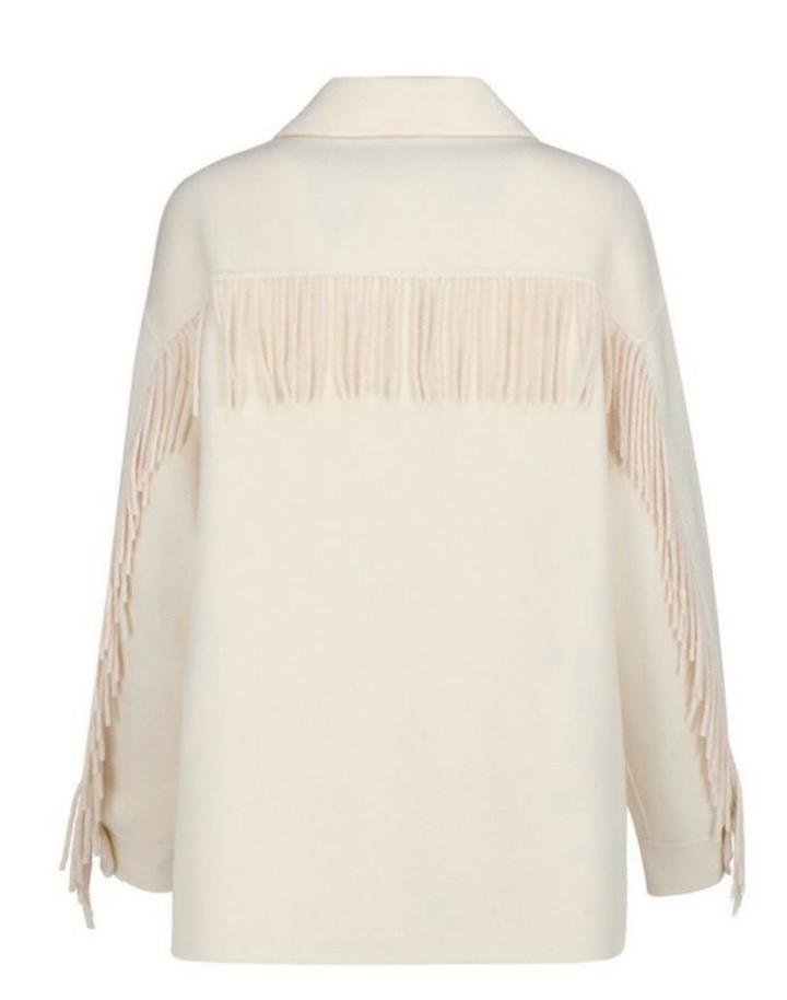 Куртка-рубашка из 100% шерсти с бахромой Классический воротник, длинные рукава, застежка на пуговицах спереди, нагрудный карман на двух пуговицах и закругленный подол. Артикул: 503870