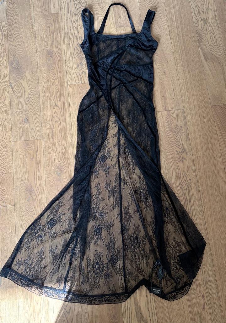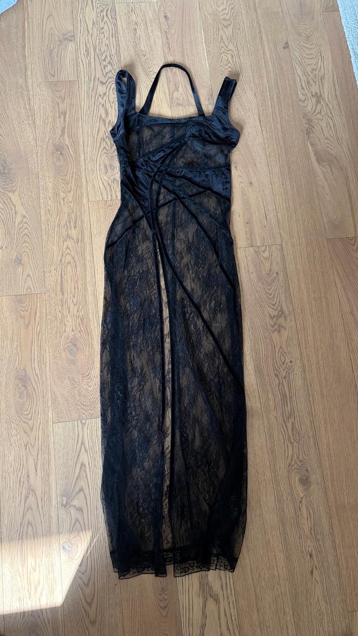 Длинный топ из кружева с велюром Кружево: 100% нейлон Велюр: 92% полиэстер 8% эластан ОГ 82 см Длина 115 см Размер М, маломерит подойдет на XS-S Артикул: 503990