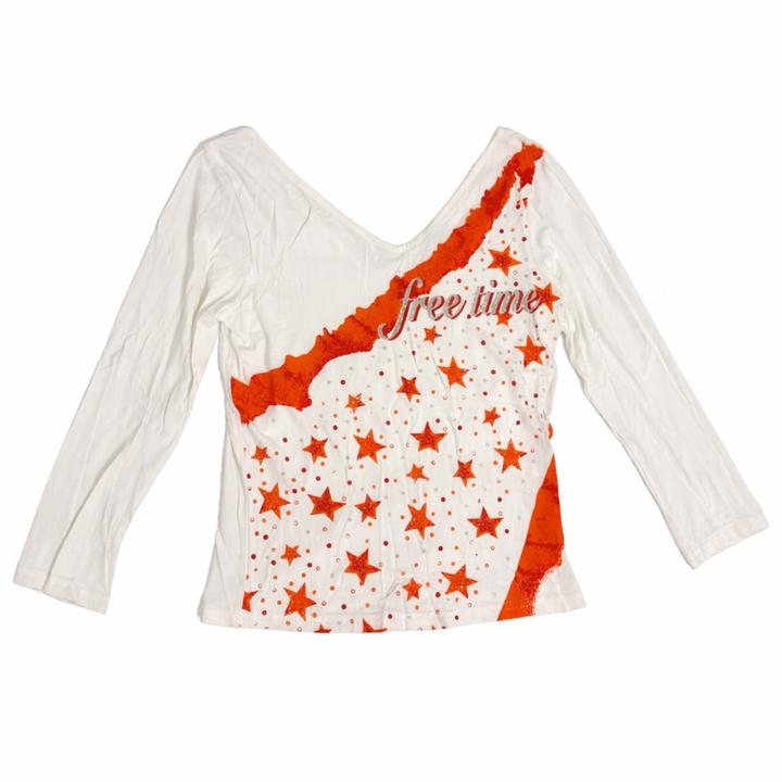 Винтажный белый топ с принтом в стиле 00-х В хорошем состоянии, но есть одно мелкое пятнышко Артикул: 503997