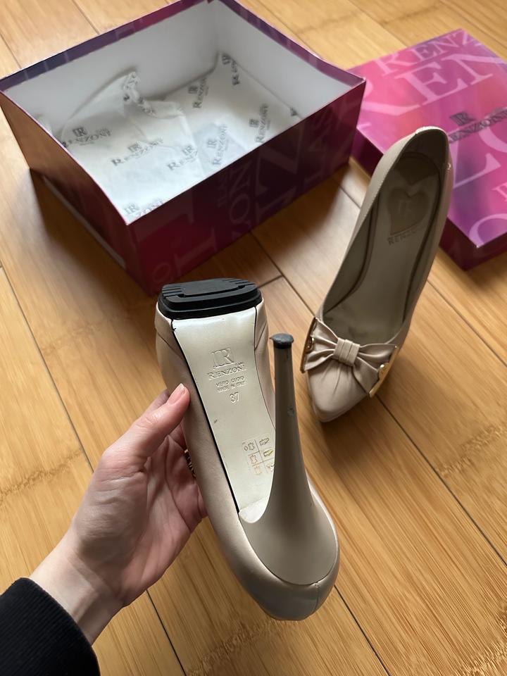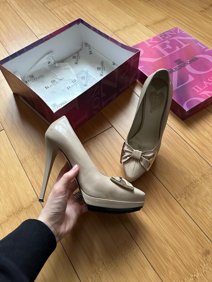 Женственные туфли от итальянского бренда Renzoni элегантная классика с акцентом на детали. • Оригинал Renzoni • Натуральная кожа • Декор с бантом и металлическими элементами • Светлый универсальный оттенок Состояние: хорошее, одевались 2 раза Идеальны для аккуратных, элегантных образов Артикул: 504066