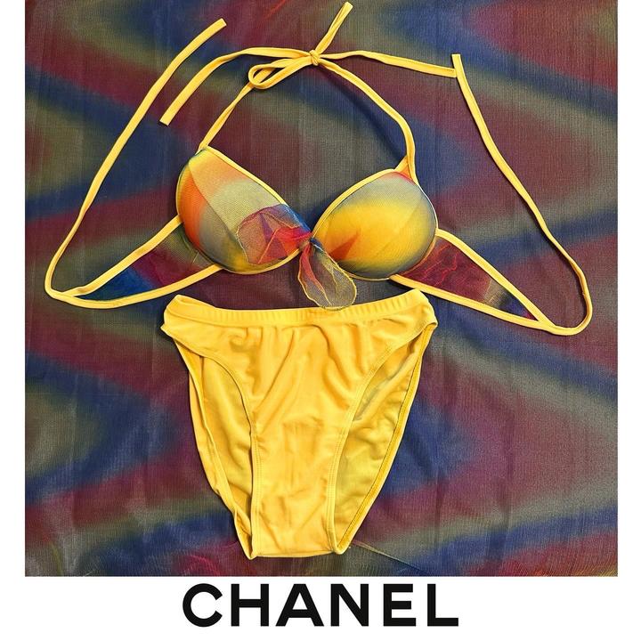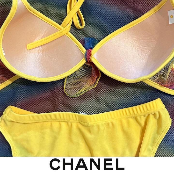 Новый оригинальный купальник Chanel в жёлто-радужной гамме. Куплен в начале 2010-х годов В комплекте радужная полупрозрачная накидка 💛Яркий, но изысканный акцент для летних образов, подчеркивающий статус и чувство стиля. Артикул: 504095