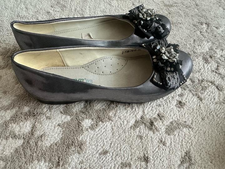 Продам туфли для девочек новые. Цена 1500. Черные размер 27, серебряные 34. Артикул: 504133