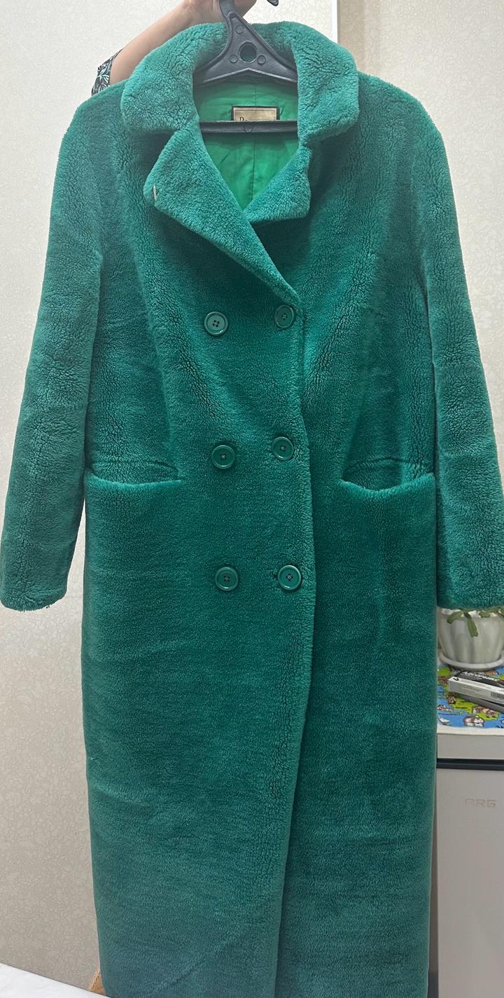 Натуральная шуба из овчины в красивом зелёном оттенке 💚 Длина 120 см — смотрится очень эффектно и элегантно. Надевалась всего несколько раз, состояние отличное. Артикул: 504147