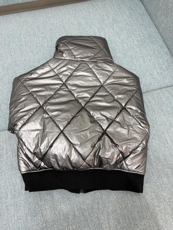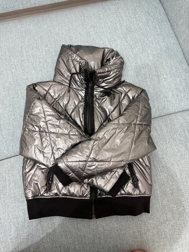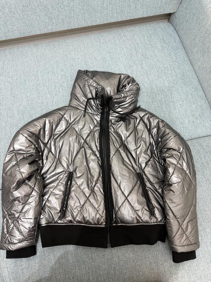 Теплая курточка без капюшона с высоким воротником, очень стильный металлический цвет. Бренд IKKS, популярный во Франции . Покупала в Париже . Состояние отличное Артикул: 504211