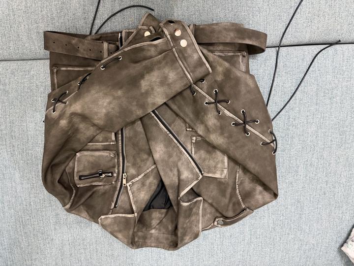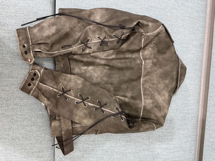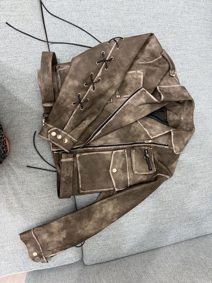 Экокожа косуха короткая, тренд 2025. Очень стильная, на рукавах завязки , можете перевязать на свое усмотрение. Фурнитура качественная , металлическая. Артикул: 504219