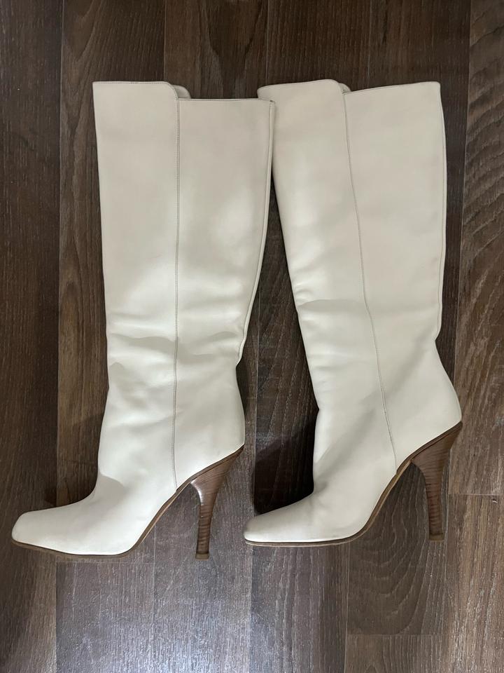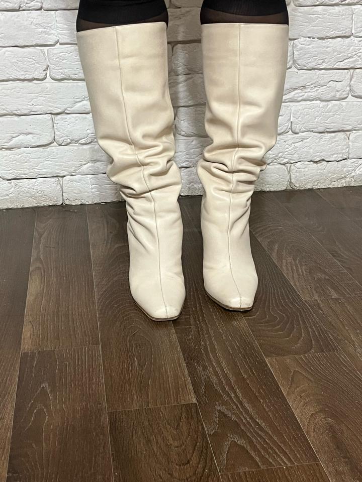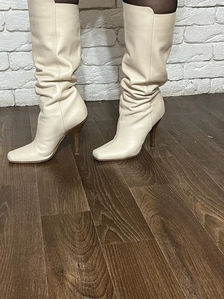 Кремового цвета сапоги высотой 40 см, каблуки 10 см, оригинал, без изъянов Артикул: 504399