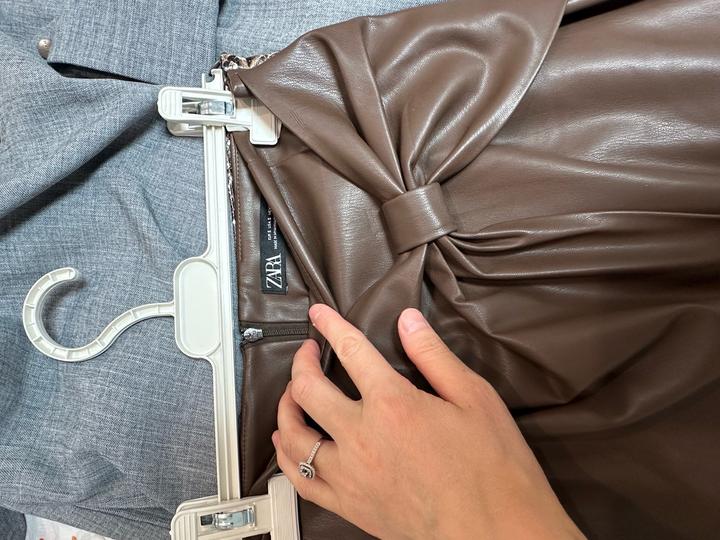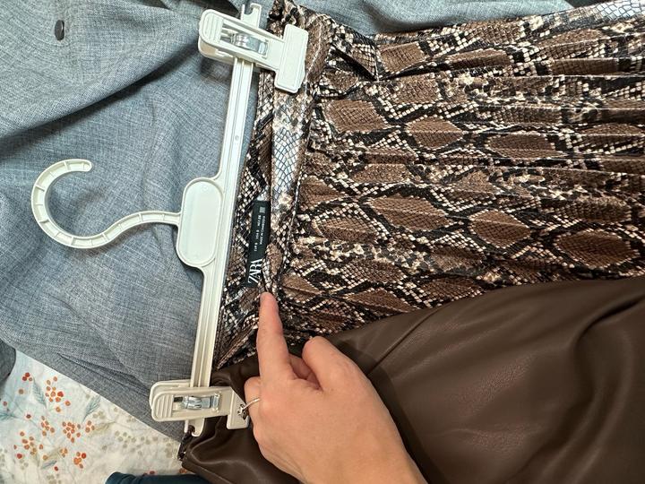 Однотоное коричневое с бантом, одевалось 1 раз на мероприятие и всё. Второе в Змеиный принт в гормошку, покупала оба в Зара по рекомендации стилиста. Артикул: 504450