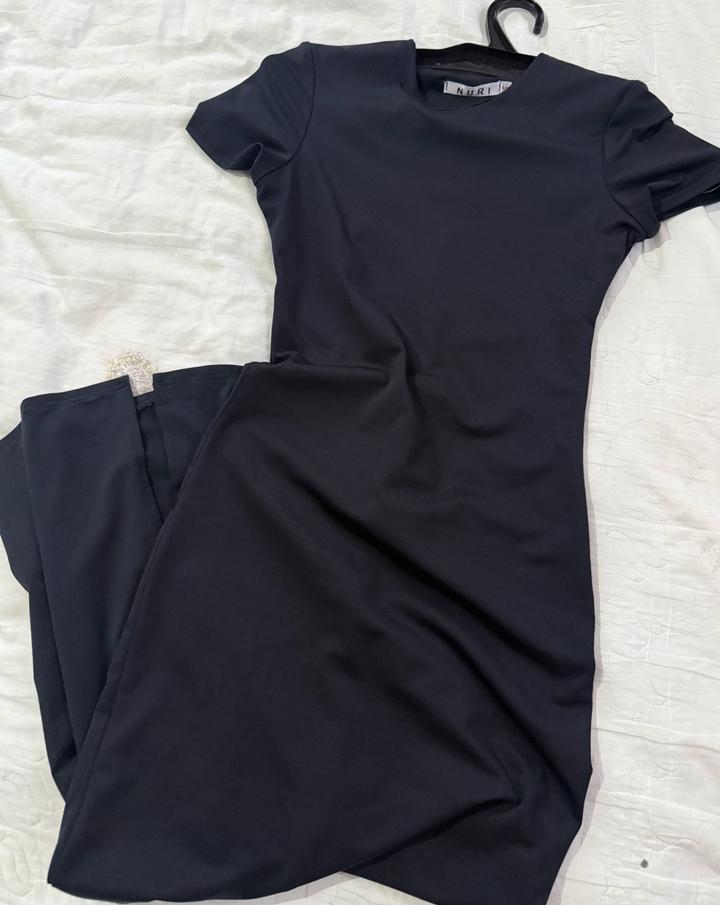 Темно синий обтягивающие платье с разрезом сзади Артикул: 504517