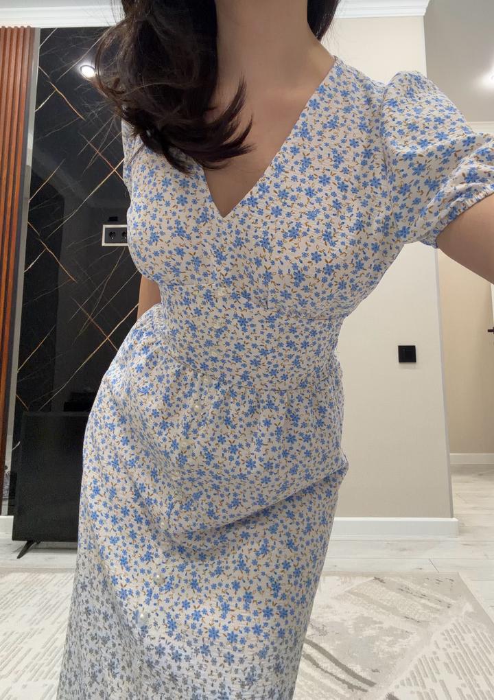 Платье белое с голубыми мелкими цветочками. Для летних прогулок 🤌🏽Рукава - фонарики с резинкой. Также вшитая резинка на талии. Для миниатюрных девушек размера XS. Длина платья на рост 156 будет по щиколотки Артикул: 504545