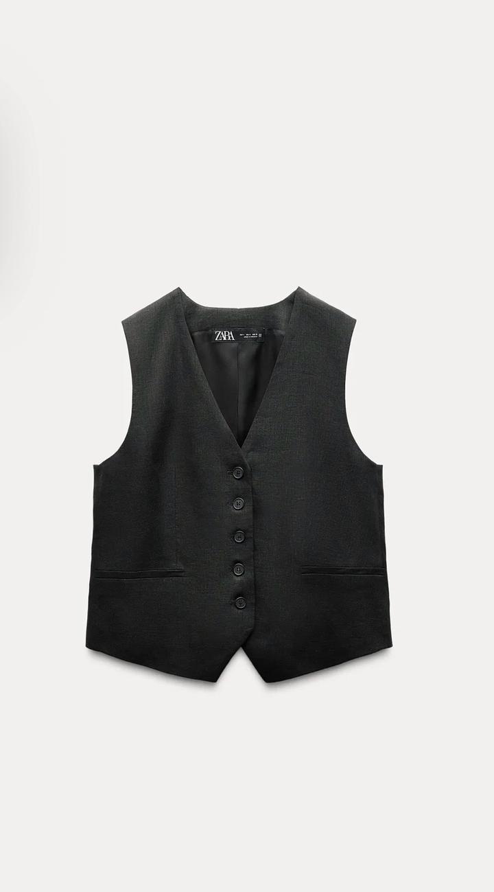 Льняная двойка (жакет+шорты) Шорты высокой пасадкой Жилет приталенного кроя Артикул: 504570