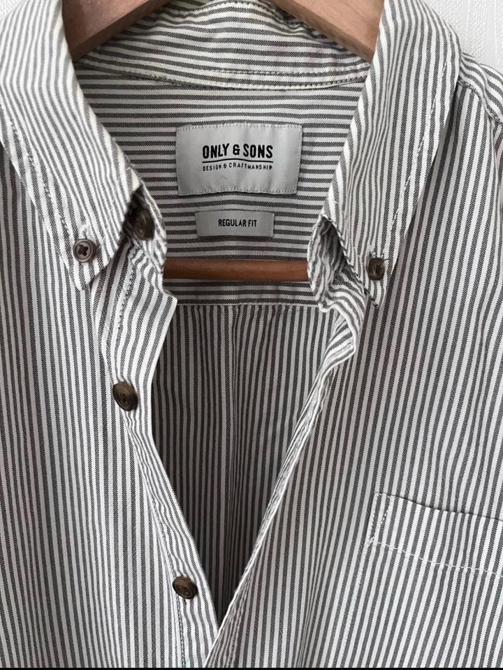 Рубашка в бело-серую полоску датского бренда Only&Sons, оригинал, XLL/XL