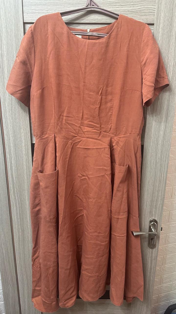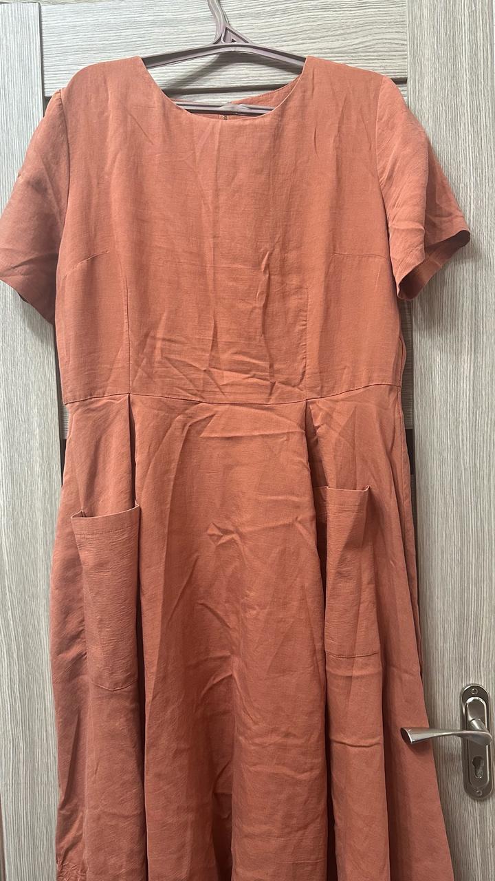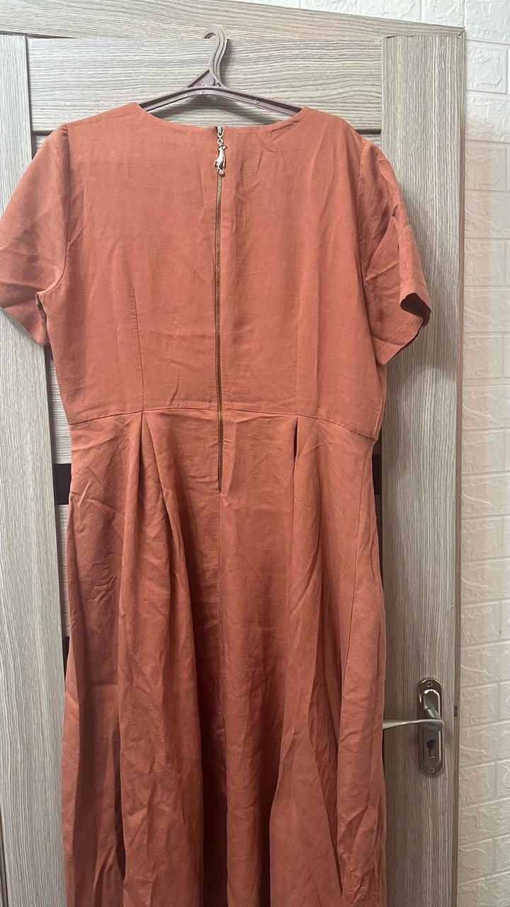 Шикарное платье. которое подчеркивает фигуру. Турция. Размер - 48 (42+6). На лето, весну будет классно. Цвет - кирпичный. Материал - хлопковое. Длина - французская. Артикул: 504659