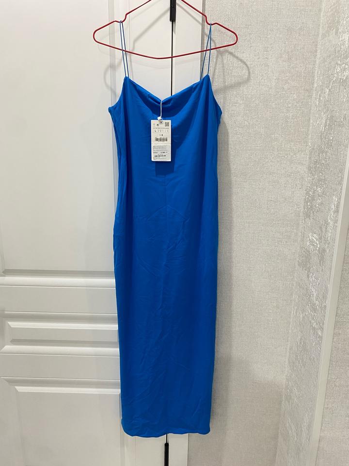 👗 Длинное платье Zara (новое) С биркой, ни разу не надевалось ✨ ✔️ Размер: L ✔️ Насыщенный синий цвет 💙 ✔️ Лёгкая, струящаяся ткань ✔️ Очень красиво смотрится на фигуре Артикул: 504673