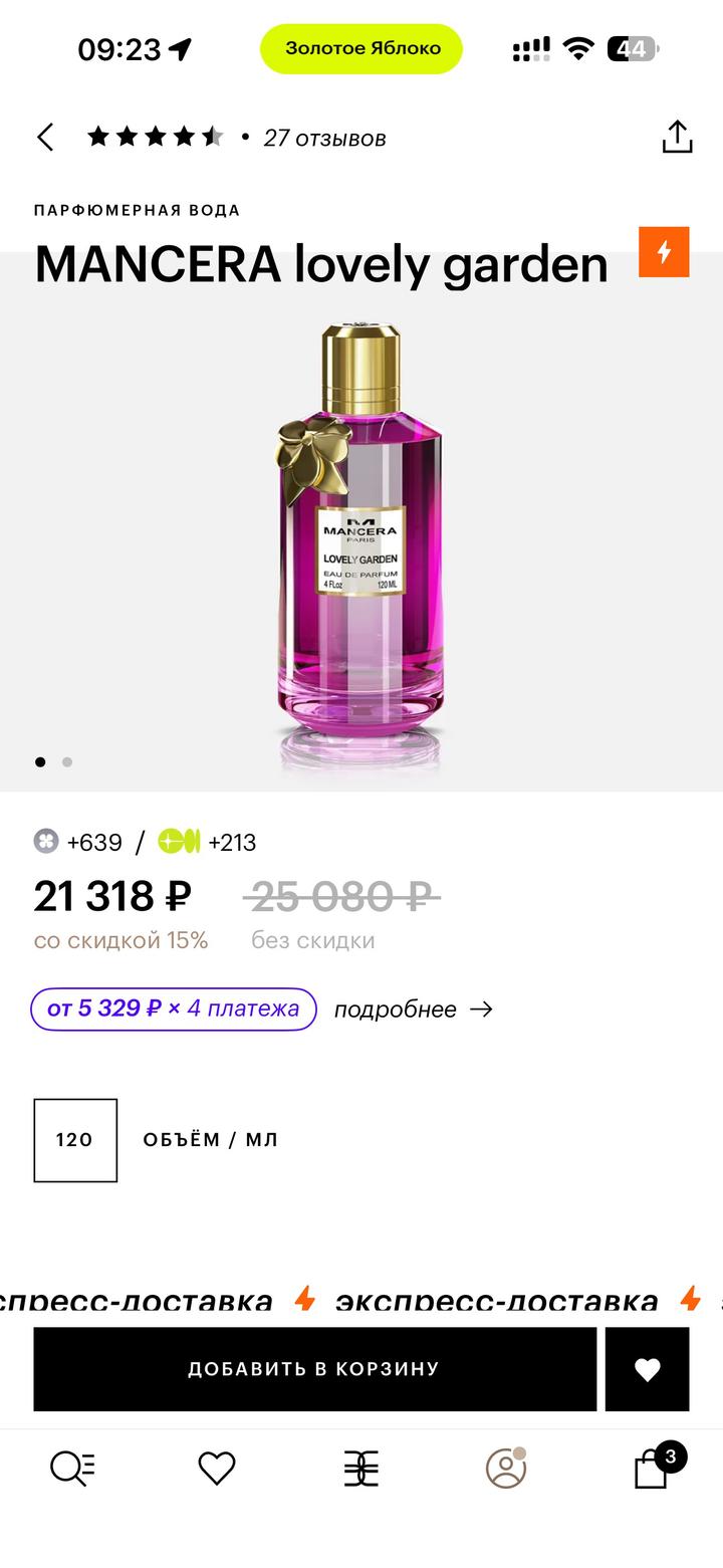 Роскошный розовый сад окутанный фруктово-мускусным ароматом. Воспоминание о сладком солнечном дне в тени лимонного дерева. Тубероза и цветы апельсина переплетаются с пудровой дымкой, в то время как изысканный красный мандарин привносит деликатный и чувственный древесный шлейф. Покупала дорого в Золотом Яблоке в России. Коробка оригинальная есть. Запах ооочень вкусный и дорогой. Глубокий очень. Что-то из прошлого… Артикул: 504680