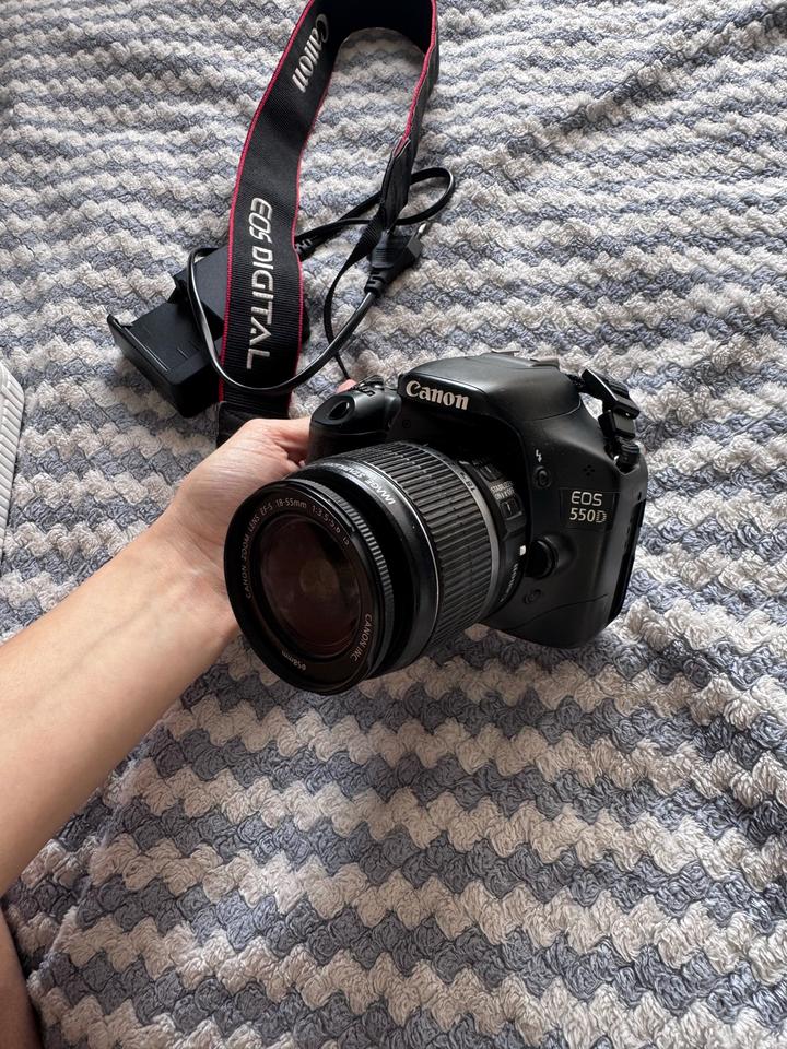 Зеркалка Canon EOS 550D + объектив 18–55 Отличное состояние, всё работает Подходит для начинающих / контента / блога Супер качество фото и видео) В комплекте: камера, объектив, ремешок и зарядник для аккума В конце прикрепила фотки которые получаются на фотик Артикул: 504781