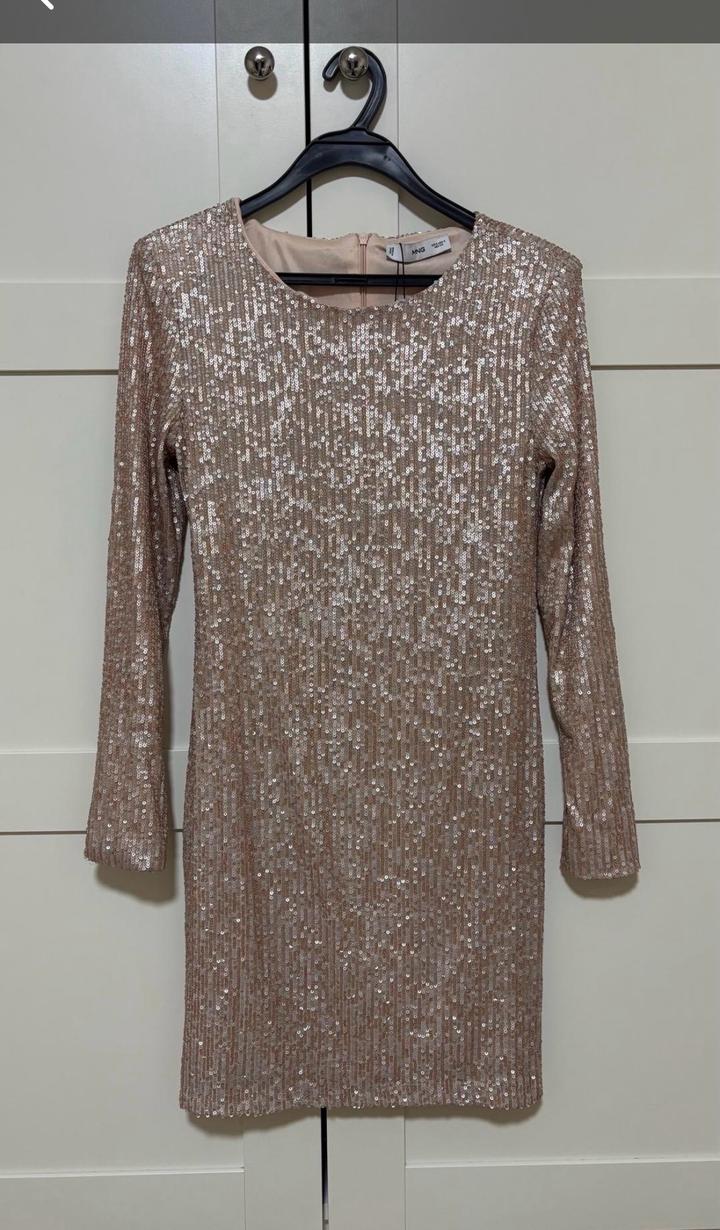Розовое платье в пайетках Mango - эффектный выбор для вечернего выхода. Блестит шикарно. Новое. Короткое. Артикул: 504798