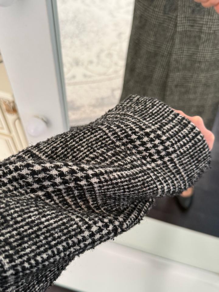 💯 шерсть. Можно пройтись машинкой от катышек, но из-за текстуры материала, катышки как будто и должны быть. Есть не много на подкладе катышки. В остальном все норм. Носился редко. Актуальный крой. Я носила с джинсами и спортивной обувью. Теплое. Подойдет для теплой зимы Артикул: 504821
