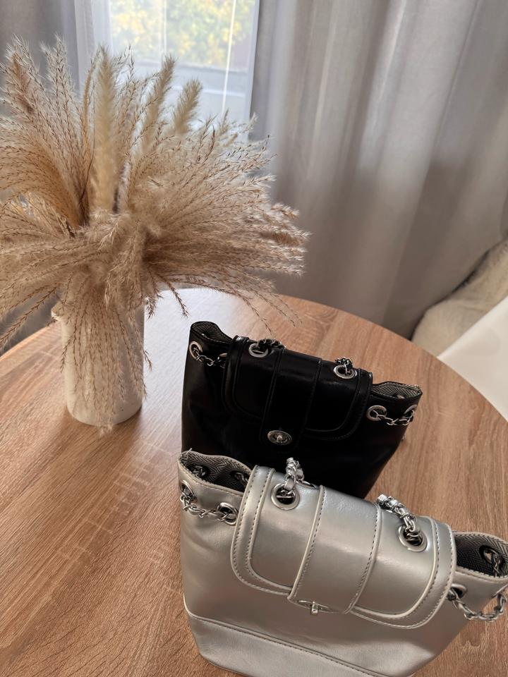 Серебристый мини-рюкзак из эко-кожи-